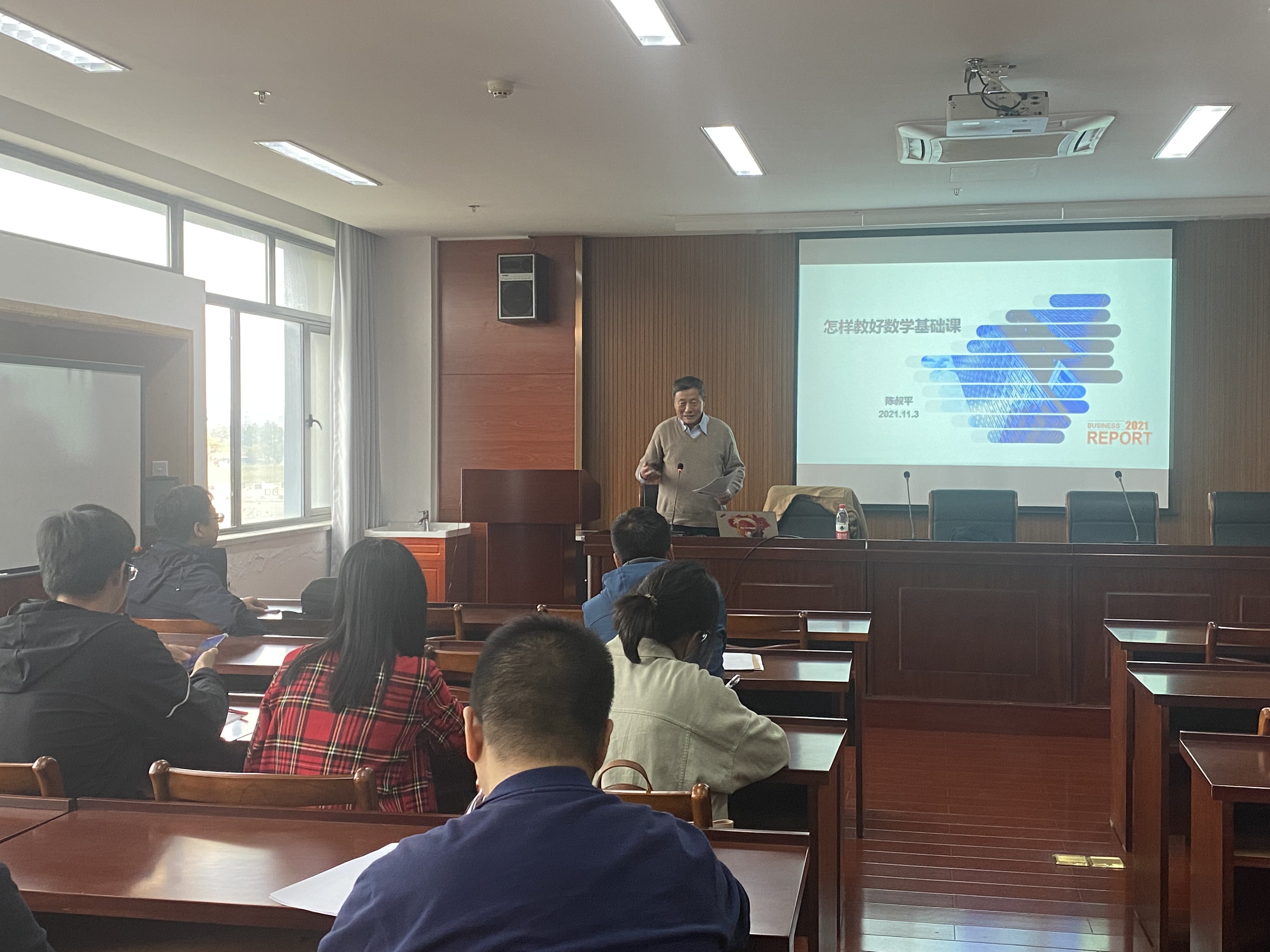 学期过半,为更好地总结教学经验,分享教学心得,做好期中教学检查,11月3日下午,麻豆视频 举行期中教研活动。特邀贵州大学原校长陈叔平教授来学院,为教师们作了题为“怎样教好数学基础课”的主题讲座。麻豆视频 副院长虞旦盛主持会议,副院长何济位出席教研活动。