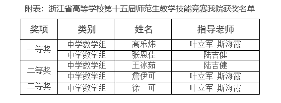 据悉,浙江省高等学校师范生教学技能竞赛是面向省内师范专业高校学生参加的一项专业性省级赛事。自2007年以来,浙江省高等学校师范生教学技能竞赛每年举办一次,以此检验高校师资培养的质量,全面提升高校师范生教学技能的教学与训练水平,促进教师教育的发展。竞赛以赛促学,以赛促教,以赛促研,发挥了竞赛对提高职前教师教学技能的引领示范作用,锻炼了当代师范生的教学技能,培养了一批具有高尚师德、先进教学理念、扎实教学专业能力的优秀教师后备力量。