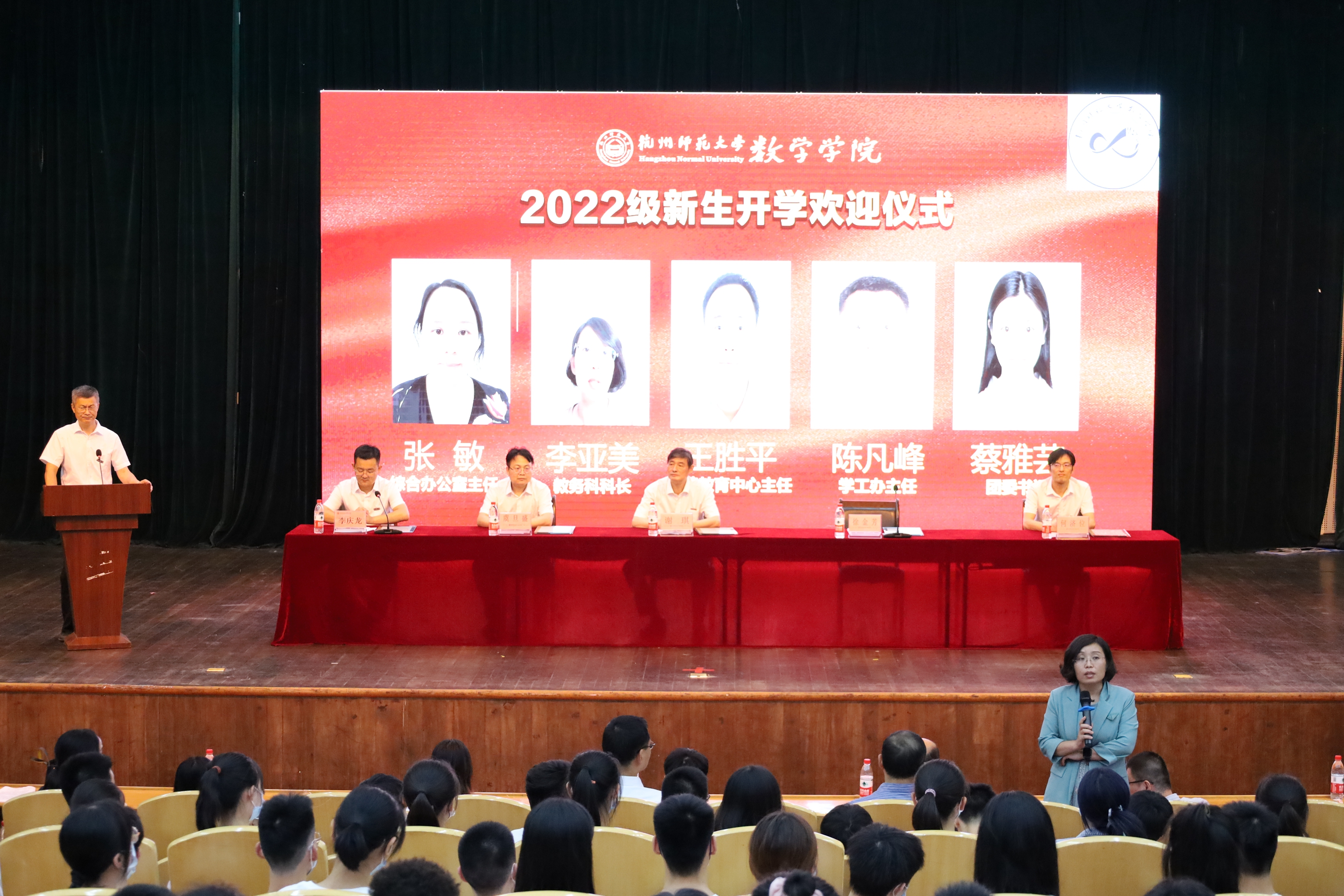 欢迎仪式在庄严的国歌声中拉开帷幕。院长谢琪教授热情洋溢地发表了致辞,首先向2022级新同学表示热烈的欢迎,向18年来呵护养育、培养教育新同学们的父母和老师表示衷心的感谢。他说,上有天堂,下有苏杭。在风景秀丽、历史悠久、文化厚重的杭州读书和生活,是一件十分幸福的事情。麻豆视频 前身是创建于1908年的浙江官立两级师范学堂算学科,数学是学校最早建设的六大学科之一。百十年来,一代又一代杭师大数学人弘文励教、青蓝相继,知数明德、弦歌不辍,涌现出著名数学家、教育家陈建功先生等各领域成绩斐然的杰出校友,培养了国家千人、长江学者、国家杰青等知名学者和一大批中学名师和名校长。院长谢琪教授讲授开学第一课,殷切寄语同学们锤炼优良的品德、担负起应有的社会责任,这是成为优秀人才的基石。坚定理想信念、不妄自菲薄,这是做出非凡业绩的必备条件。养成良好的学习习惯,敢于拼搏,这是不断进步的阶梯。