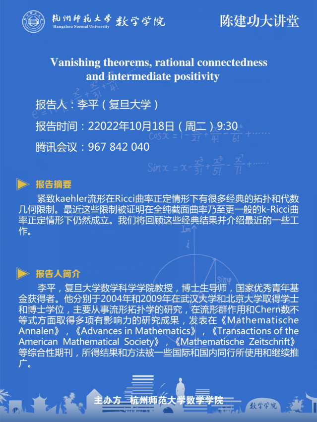 陈建功大讲堂:Vanishing theorems, rational connectedness and intermediate positivity
