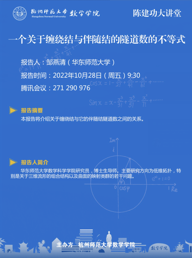 陈建功大讲堂:一个关于缠绕结与伴随结的隧道数的不等式