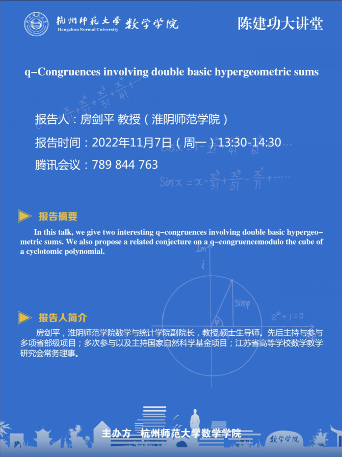 陈建功大讲堂:q-Congruences involving double basic hypergeometric sums