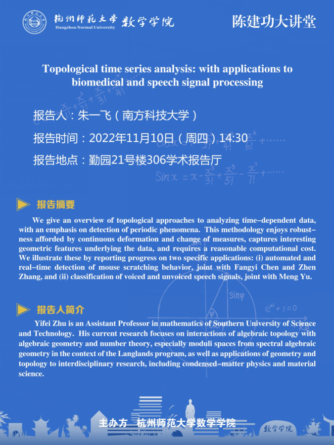 陈建功大讲堂:Topological time series analysis: with applications to biomedical and speech signal processing