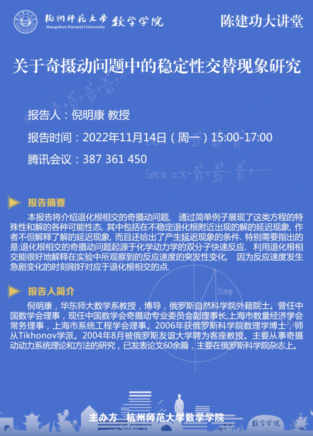 陈建功大讲堂:关于奇摄动问题中的稳定性交替现象研究