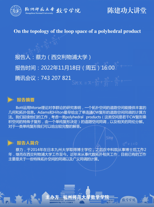 陈建功大讲堂:On the topology of the loop space of a polyhedral product