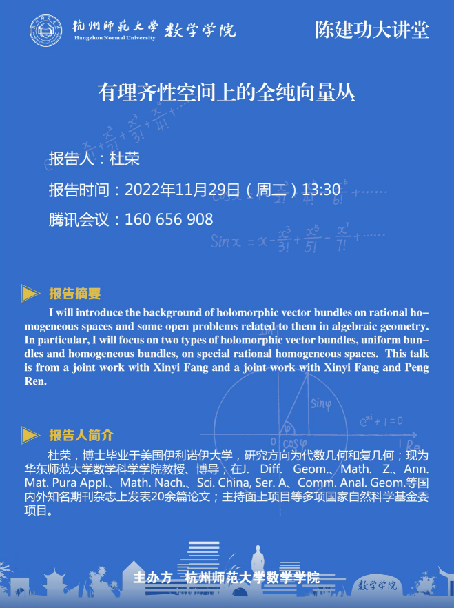 陈建功大讲堂:有理齐性空间上的全纯向量丛