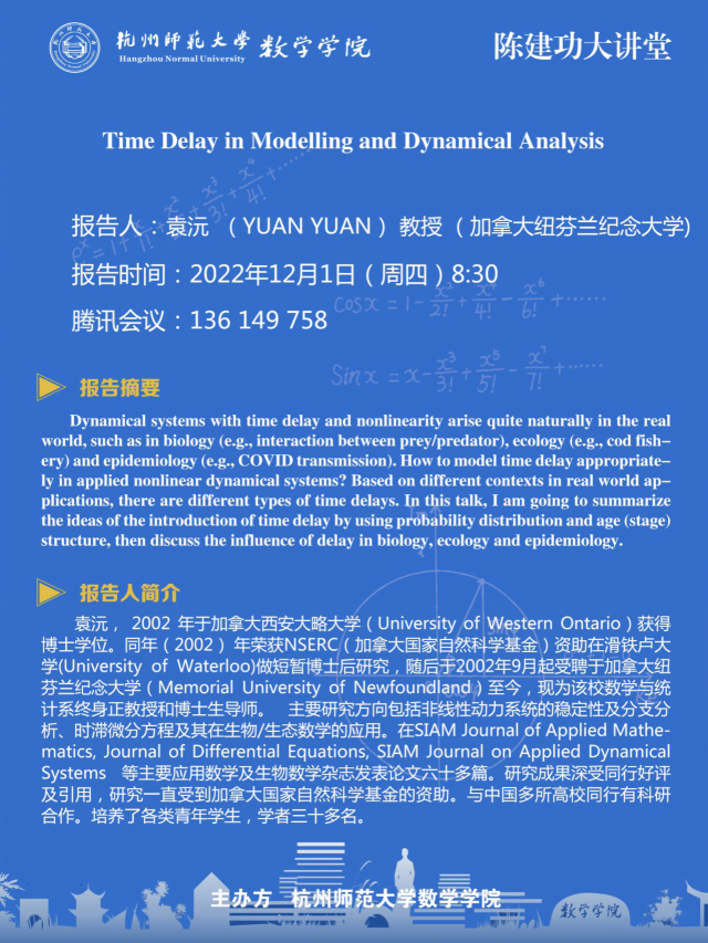陈建功大讲堂:Time Delay in Modelling and Dynamical Analysis