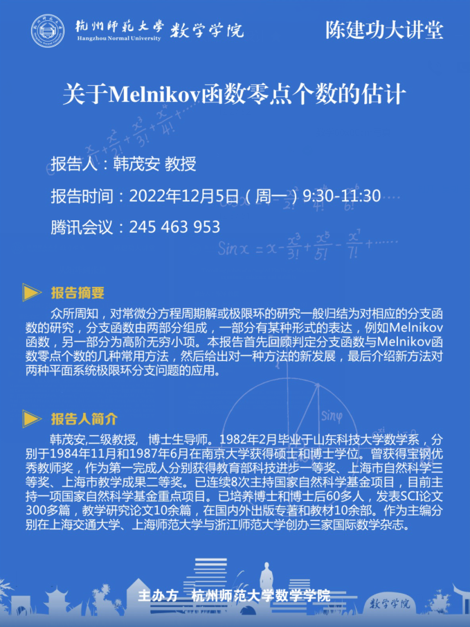 陈建功大讲堂:关于Melnikov函数零点个数的估计