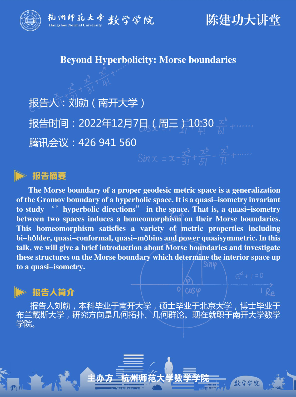 陈建功大讲堂:Beyond Hyperbolicity: Morse boundaries