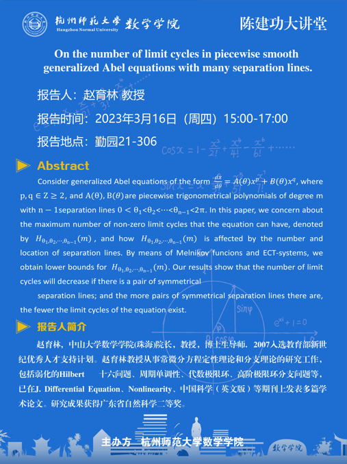 陈建功大讲堂:On the number of limit cycles in piecewise smooth generalized Abel equations with many separation lines