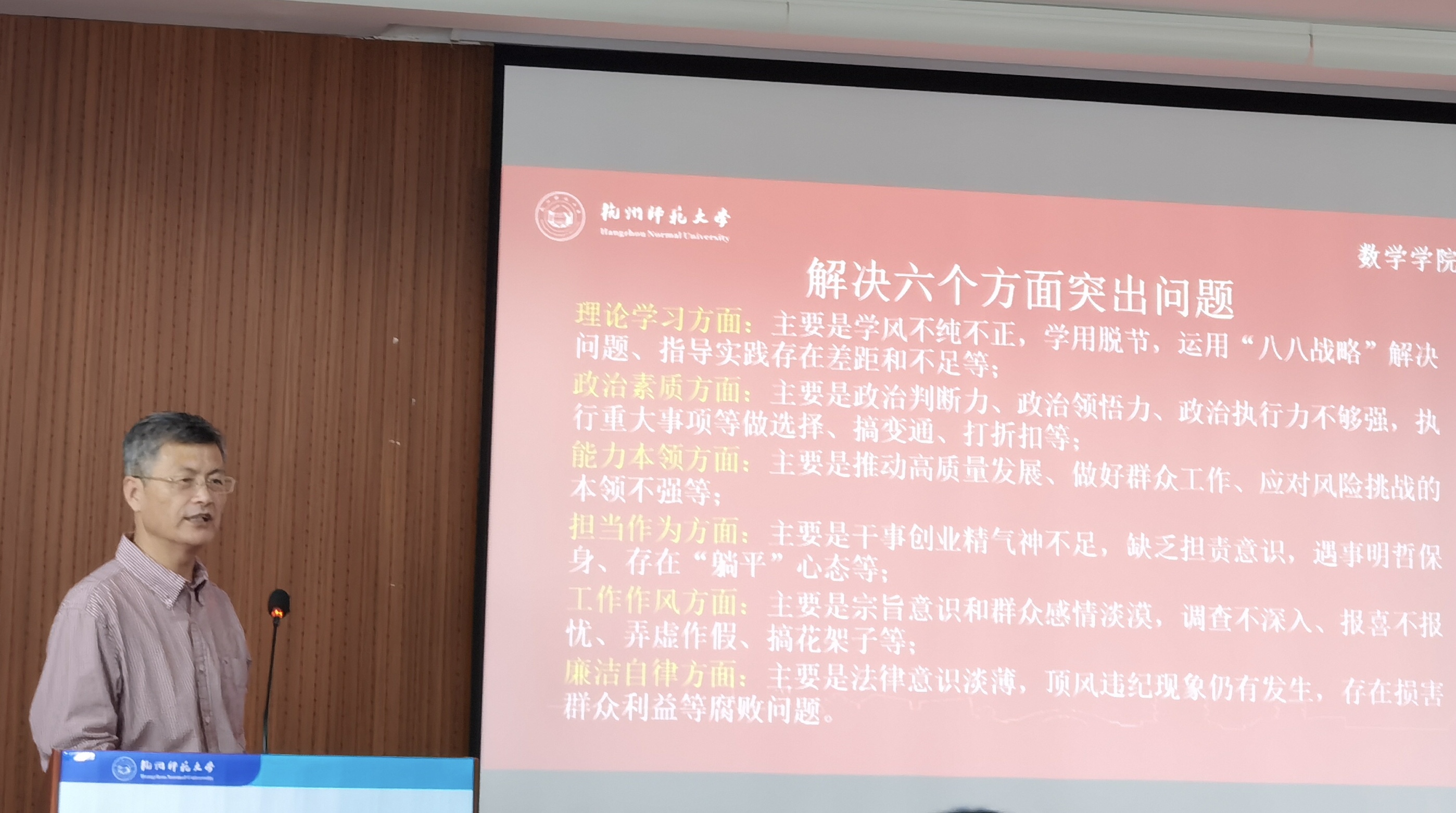 徐金芳要求,各党支部和师生党员要坚持学思用贯通、知信行统一,把理论学习、调查研究、推动发展、检视整改贯通起来,有机融合、一体推进,切实将习近平新时代中国特色社会主义思想转化为坚定理想、锤炼党性、指导实践和推动工作的强大力量,为学校争创双一流展现精彩的数学担当。
