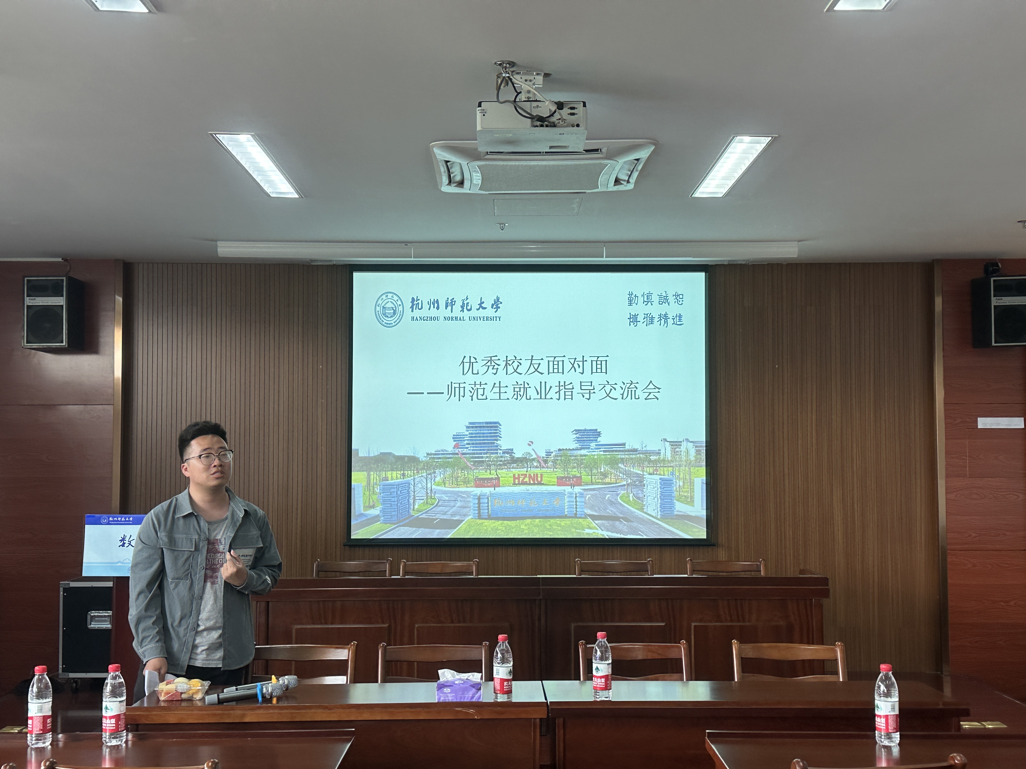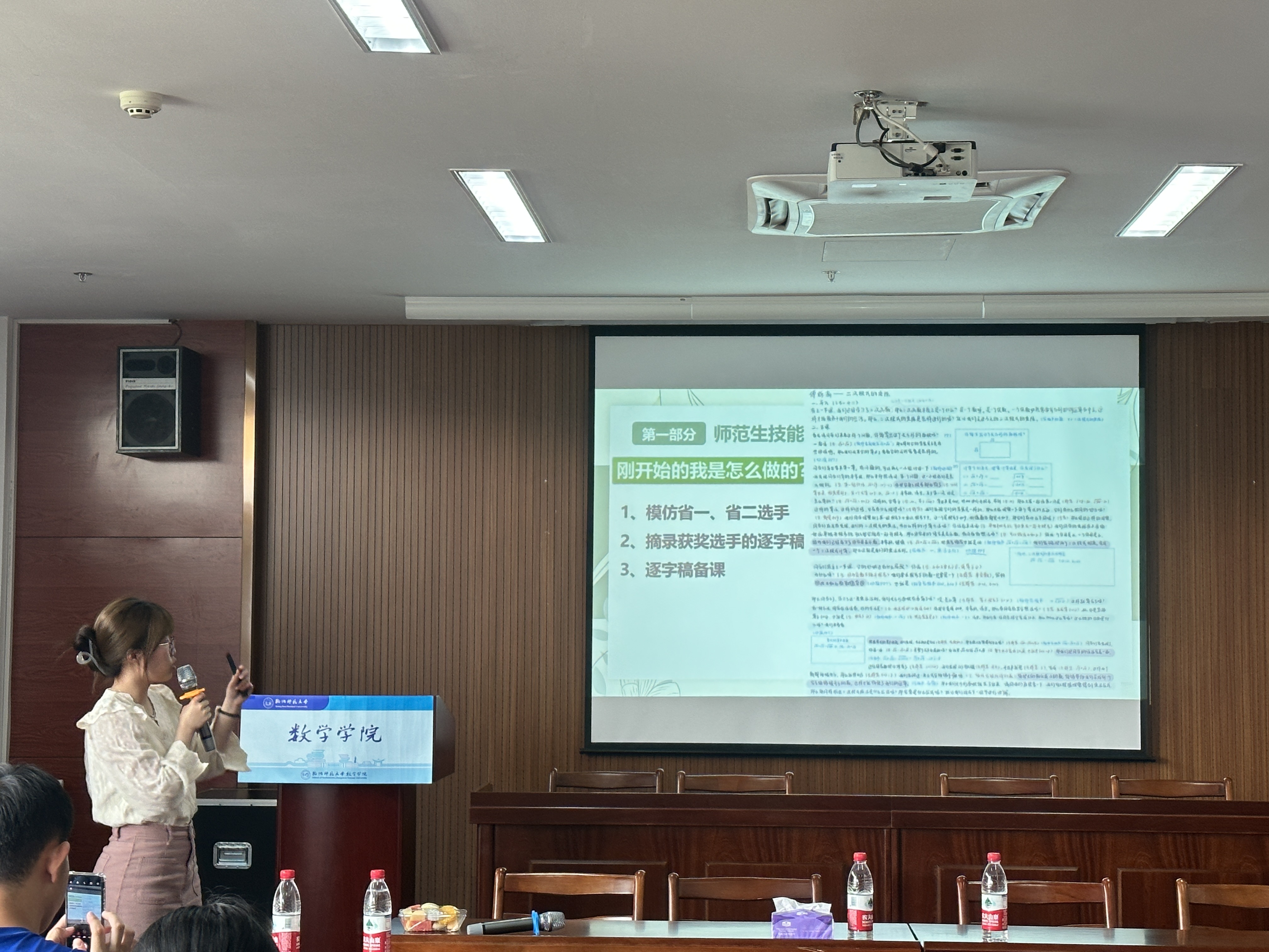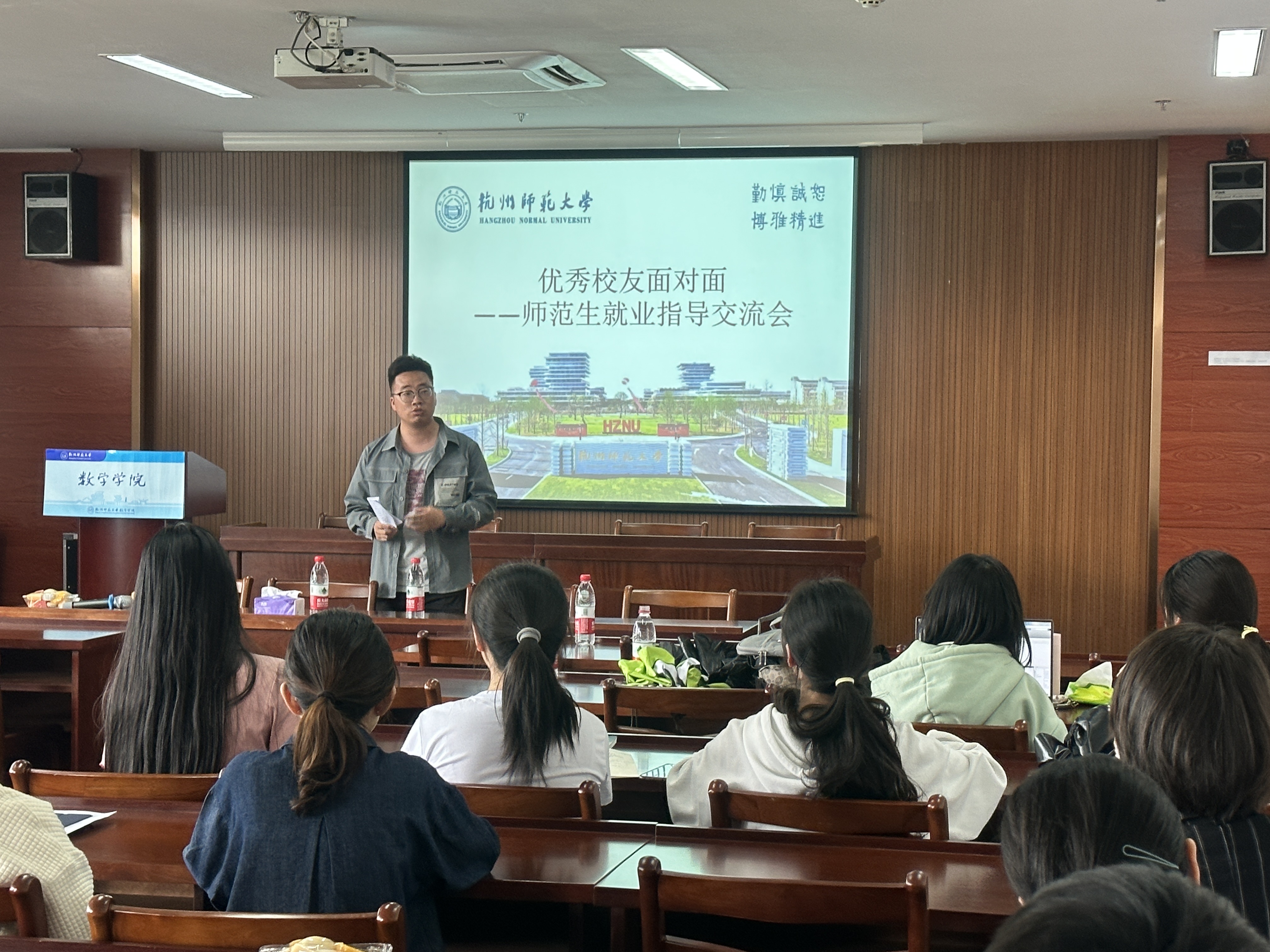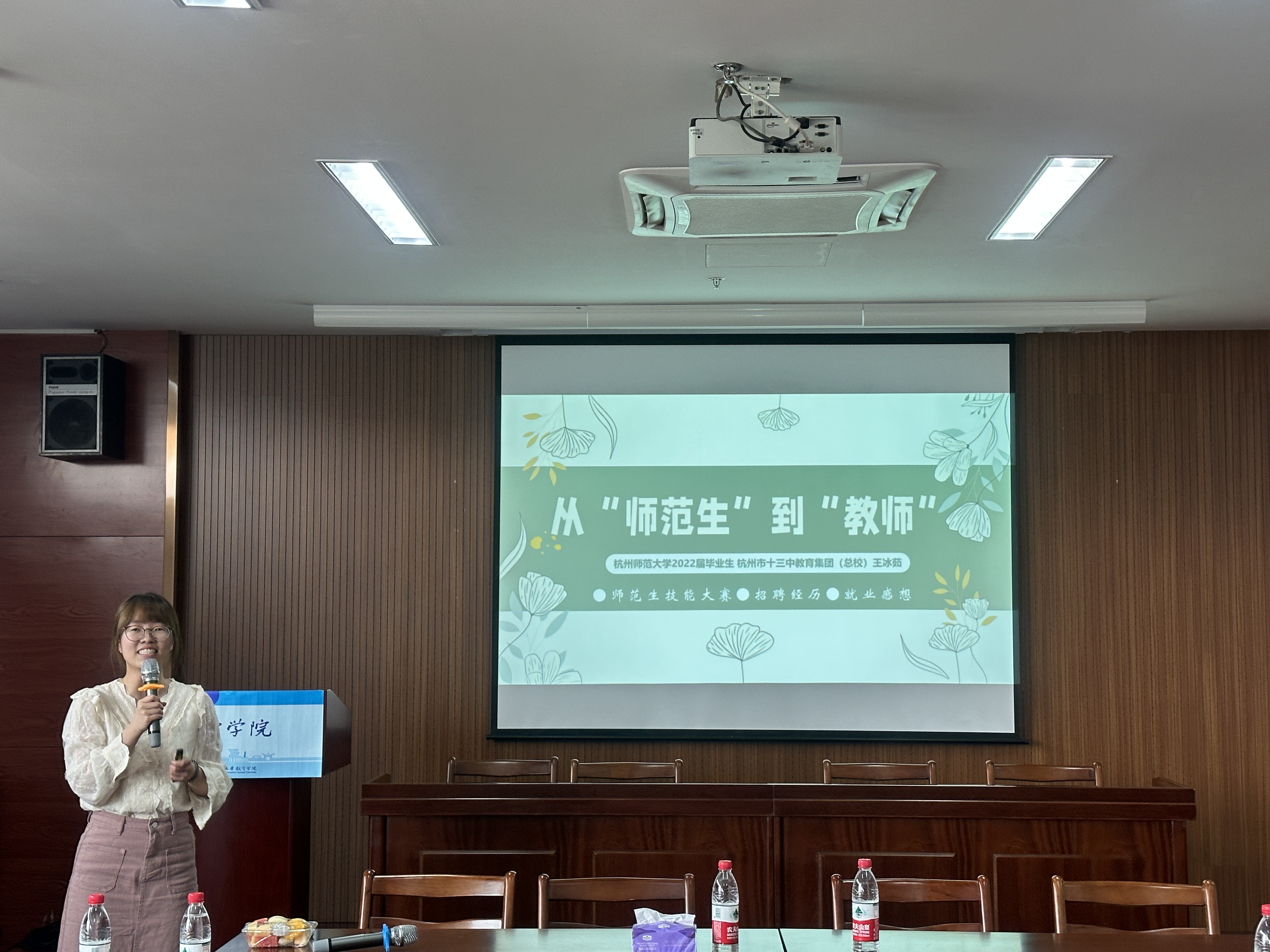 会上,李恩泽生动地讲解了自己当时在大学时候的学习状态,并且对师范生教资考试、教师编制考试等目前同学们正面临的考试情况进行了详细解读,给出了行之有效的复习建议和指导。他结合当前的教学工作,总结并分享了自己的切身感受以及职场tips,使同学们深受启发。王冰茹以“从‘师范生’到‘教师’”为题,从师范生技能大赛、招聘经验、就业感想等方面详细阐述了备赛要点、面试技巧等,干货满满,在场同学受益匪浅。