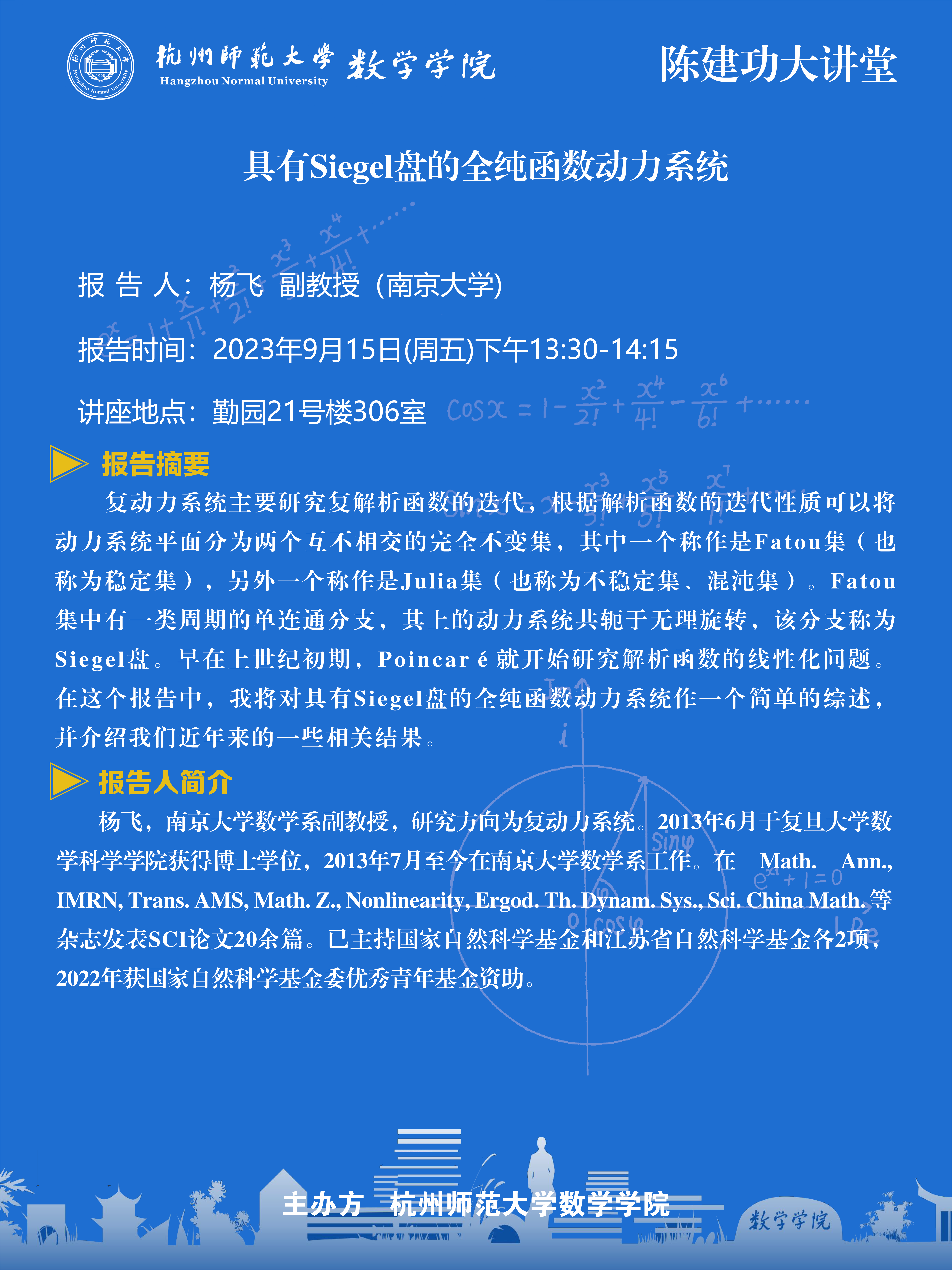 陈建功大讲堂:具有Siegel盘的全纯函数动力系统