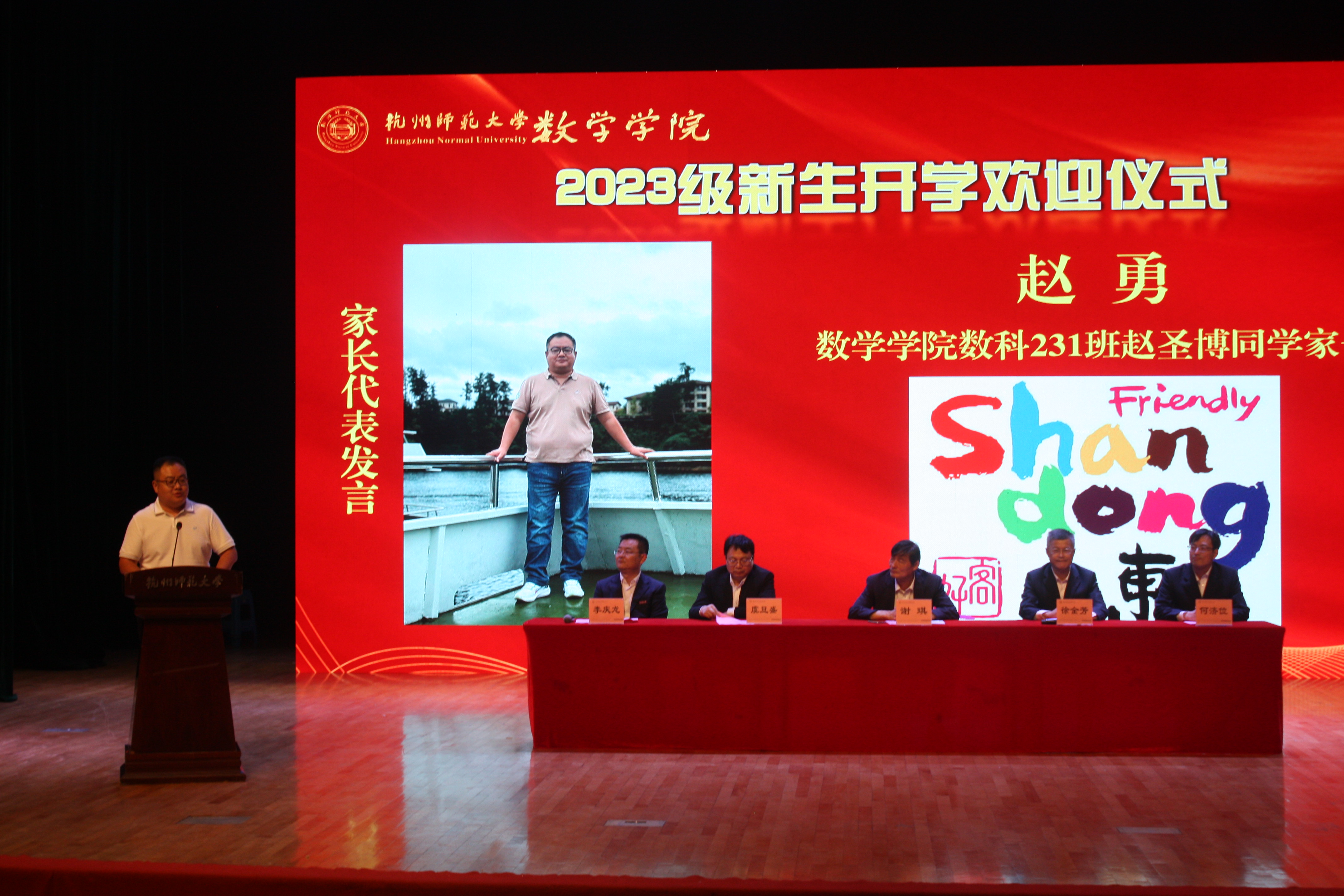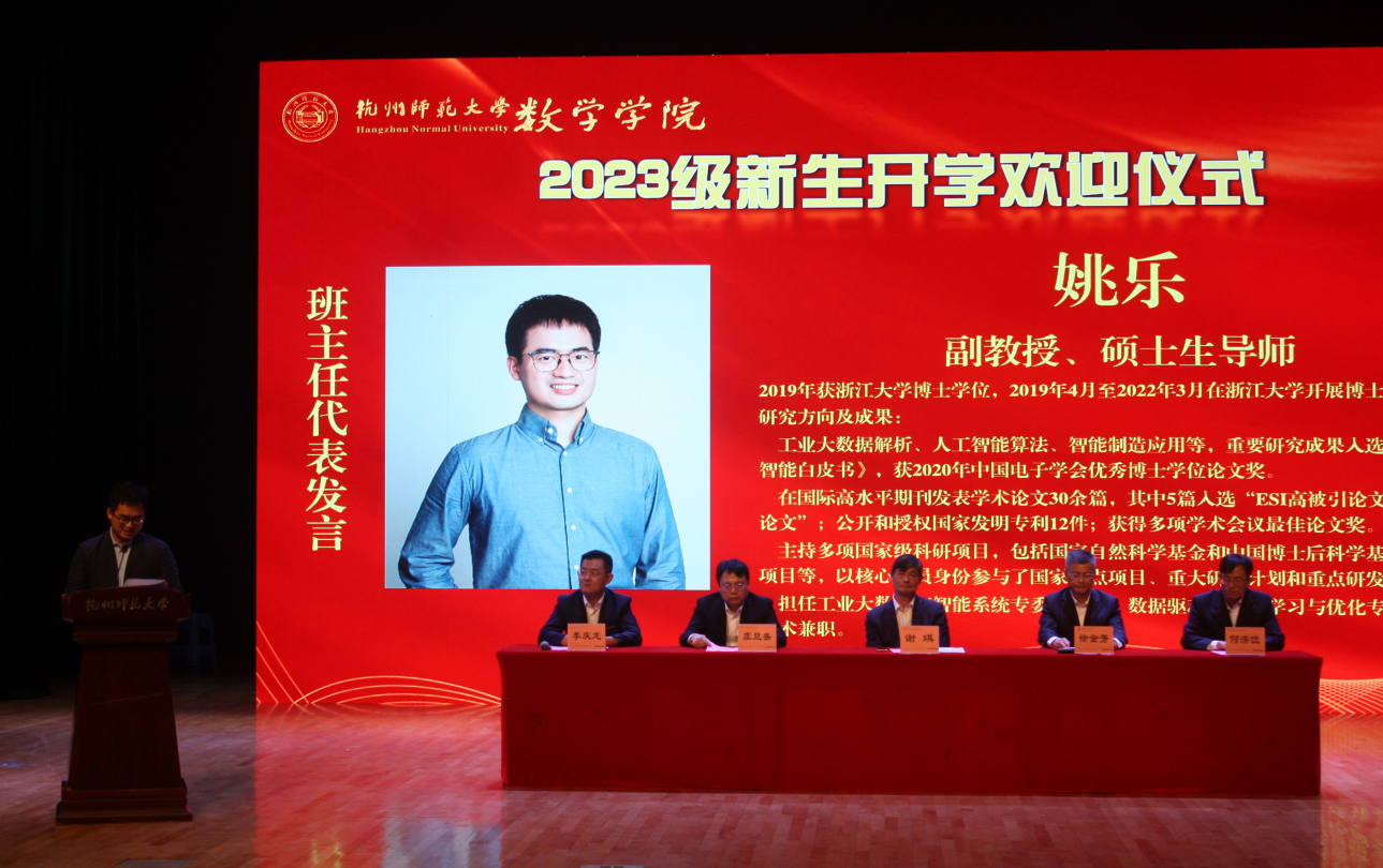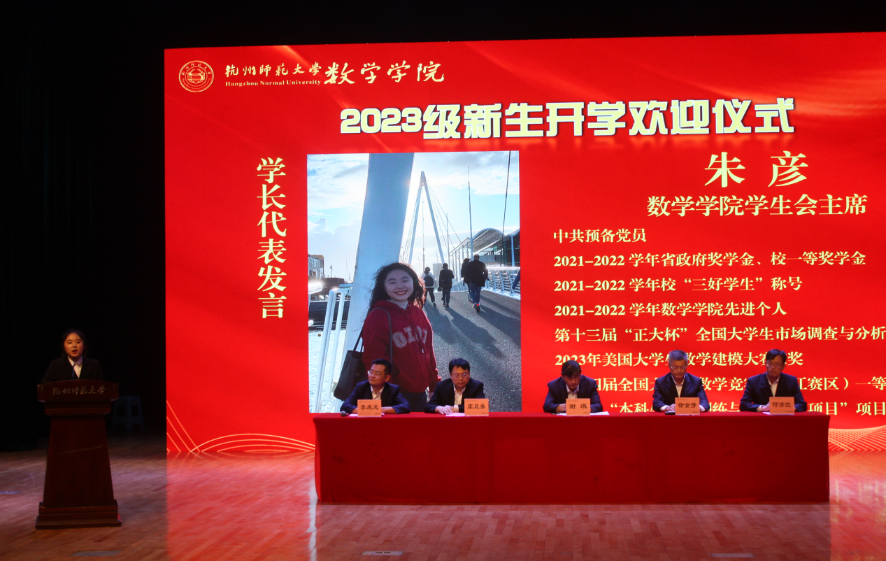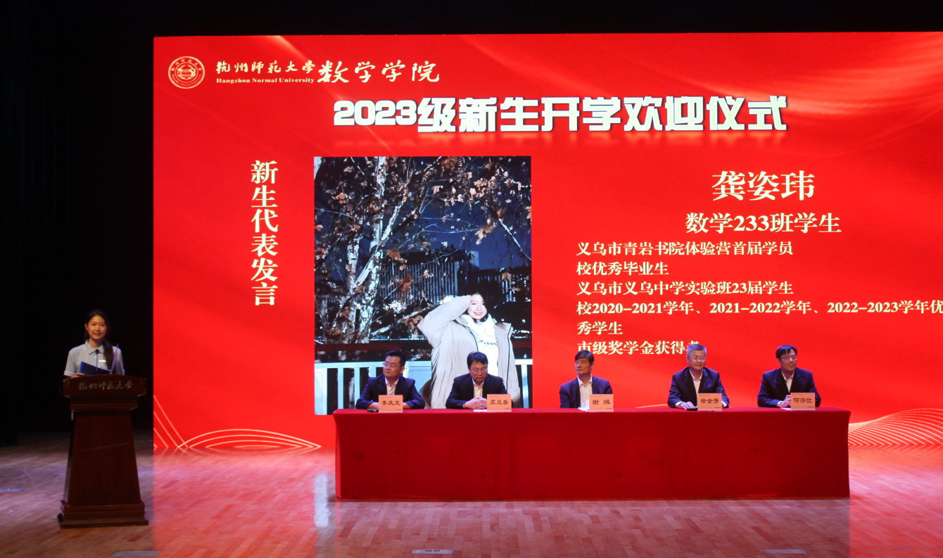 欢迎仪式上,院长谢琪教授热情洋溢地发表了欢迎致辞,向2023级新同学表示热烈的欢迎,向呵护养育、培养教育新同学们的父母和老师表示衷心的感谢。他说,恰逢杭州亚运会举办之际,麻豆视频 也作为亚运场馆见证了亚运金牌的诞生,在如此风景秀丽的城市读书、生活,是非常幸福的事情。麻豆视频 在百十年来,涌现出著名数学家、教育家陈建功先生等各领域成绩斐然的杰出校友,培养了国家千人、长江学者、国家杰青等知名学者和一大批中学名师和名校长。一代又一代杭师大数学人弘文励教、青蓝相继,知数明德、弦歌不辍。院长谢琪教授勉励大家发扬科学精神、肩负起报效国家的责任,发现数学之美,不负韶华,成为一名优秀的数学人。