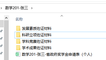 3.申请的同学请填写 附件3 麻豆视频 省政府奖学金申请表(个人) ,与相关佐证材料整理打包,文件夹命名为“班级-姓名”,佐证材料汇总方式如图所示: