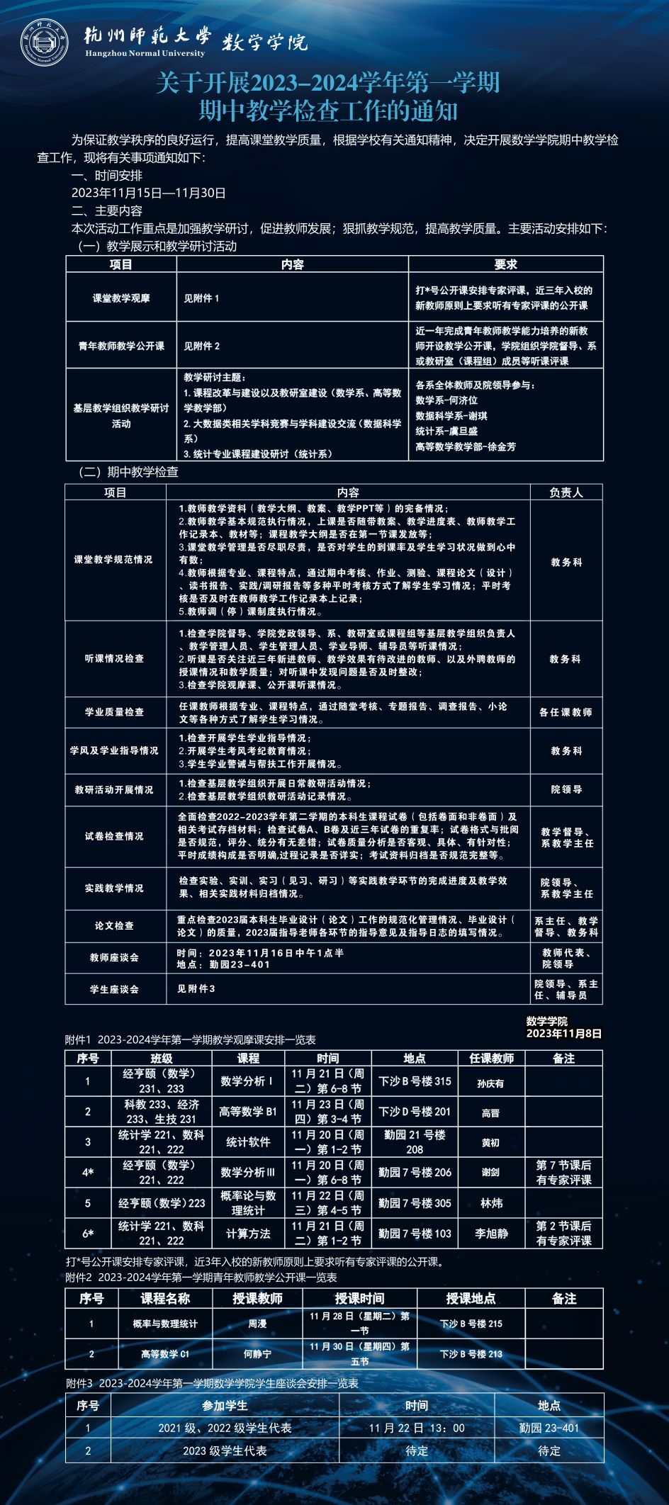 麻豆视频 2023-2024学年第一学期期中教学检查安排