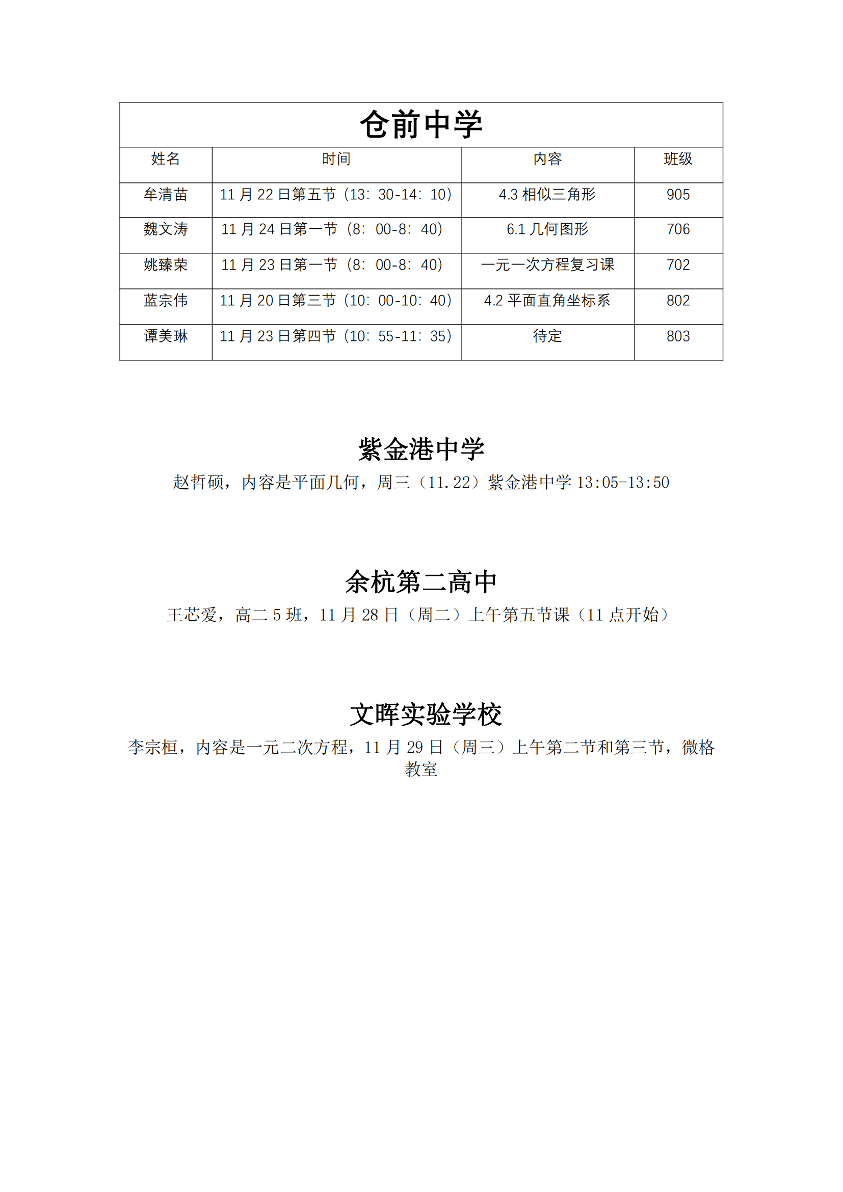 麻豆视频 2023-2024学年第一学期仓前中学等4个点实习生公开课安排