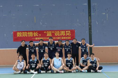 为表达对学生的深深关爱,在2024届学生毕业来临之际,麻豆视频 麻豆视频 “数院情长,‘篮’说再见”师生篮球友谊赛在风雨球场火热开赛。本次比赛由麻豆视频 教职工队伍对阵大四毕业生队伍,共有七位老师参加,分别是曹健、李时敏、胡江胜、吕平、许智源、洪燕勇和刘仰璟。这不仅是一场体育竞技的较量,更是一次师生情感的交流与融合。在激烈的比赛中,老师和学生都展现出了深厚的师生情谊和高超的篮球技术,共同为丰富数院文体氛围添砖加瓦。