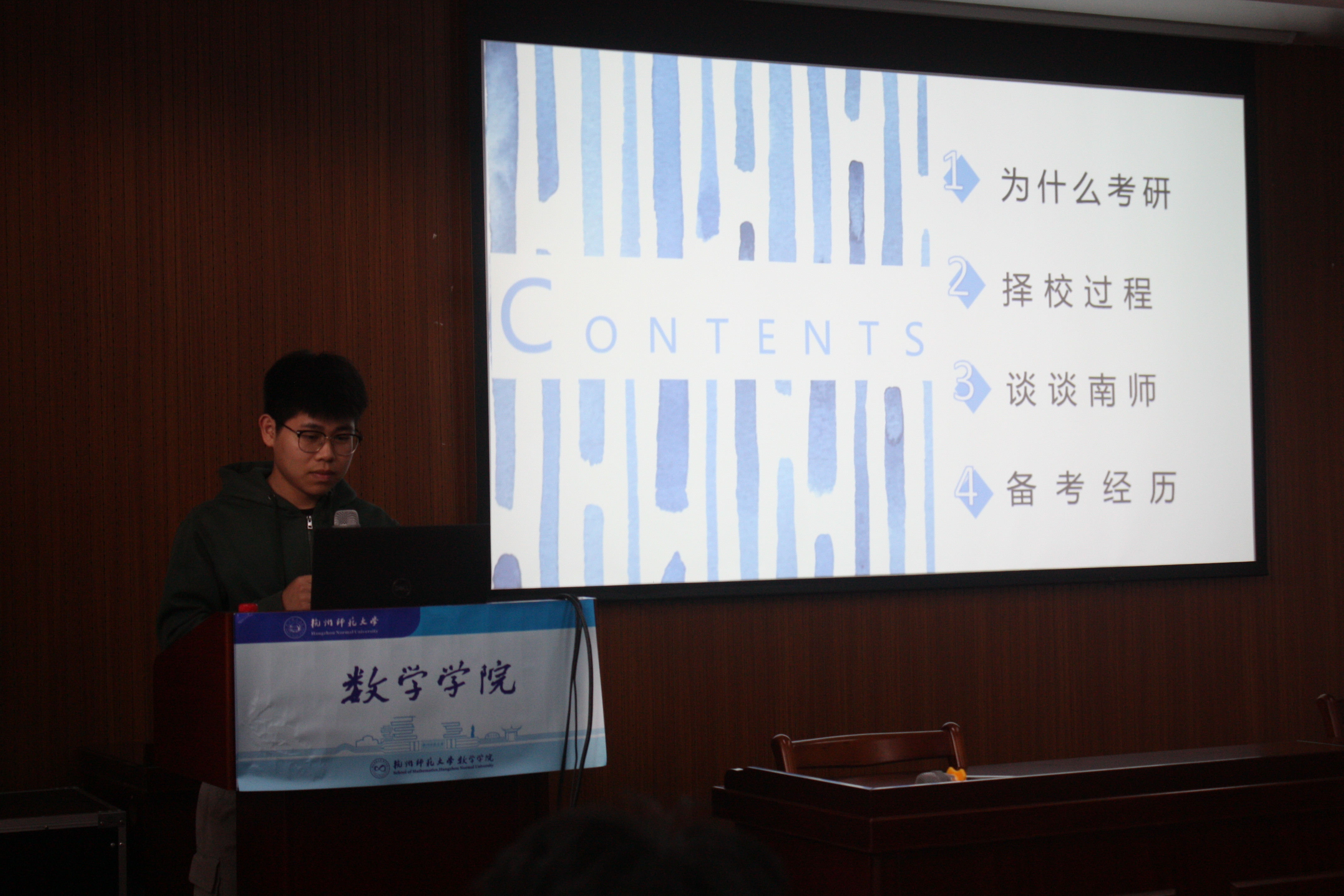 最后是上岸本校的唐思源做分享,她虽然准备考研的时间只有3个月,以及本科阶段学习的内容和考研所需的专业课存在差异,但凭借她稳定的心态和惊人的毅力,成功上岸了麻豆视频 。她给在场的同学们几句发自内心的叮嘱:不要和他人比较,复习进度不代表一切,决定考研复习就要静得下心学习等等。