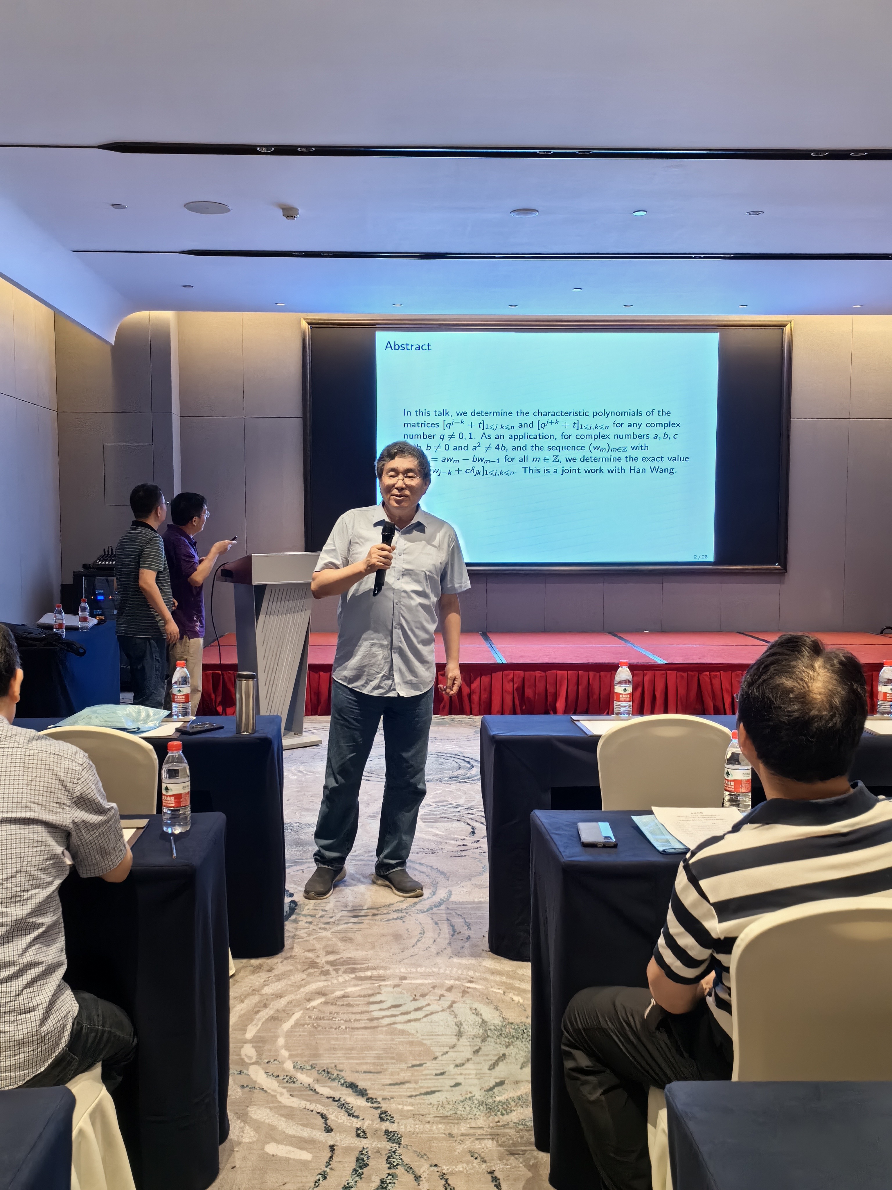 为期4天会议,共安排18个主旨会议报告和10余个主题研讨并进行了分组交流,有50多名专家、青年学者及研究生参加本次会议。南京大学孙智伟教授、华东师范大学刘治国教授、海南医科大学魏传安教授、集美大学林丽双教授、大连理工大学陈曦副教授、上海大学王晓霞副教授、南京信息工程大学王琛颖副教授及上海师范大学王春副教授等专家作了组合数学系列会议报告,同时邀请了上海师范大学王军教授、苏州大学马欣荣教授、洛阳师范学院张之正教授、集美大学晏卫根教授、天津大学侯庆虎教授、绍兴文理学院张华军教授、浙江师范大学严慧芳教授、江苏师范大学祝宝宣教授、苏州科技大学夏先伟教授、重庆大学傅士硕研究员、武汉大学王六权教授、山东大学林志聪教授等专家开展了组合数学系列主题研讨。与会学者及研究生就学术报告提出了诸多有意义的问题与报告人和其他参会老师分组进行了积极深入的探讨。