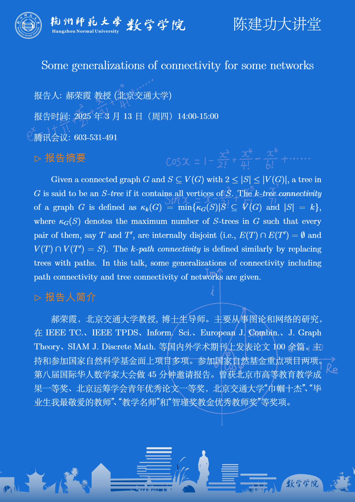 陈建功大讲堂(2025-11):Some generalizations of connectivity for somenetworks