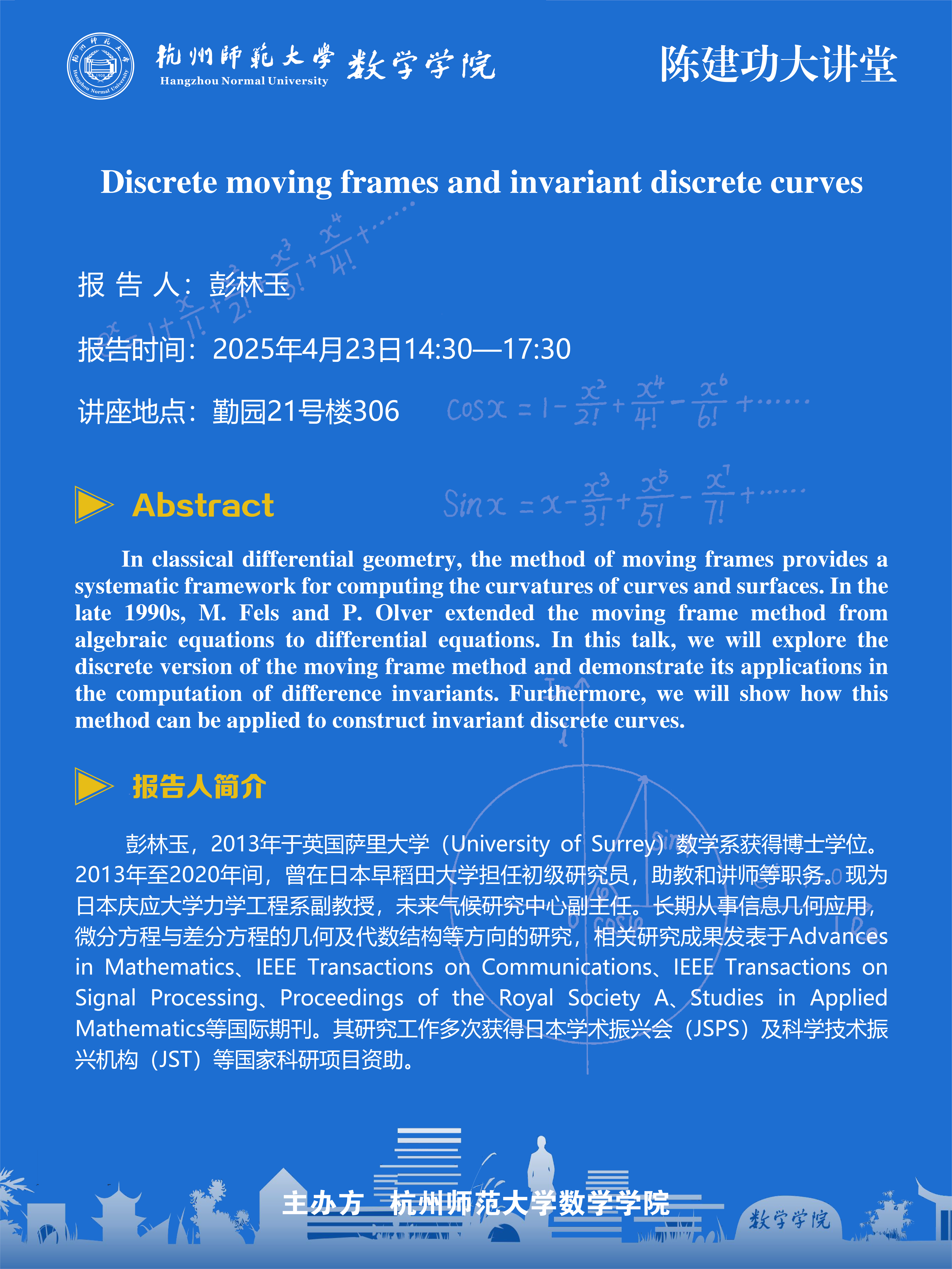 陈建功大讲堂(2025-22):Discrete moving frames and invariant discrete curves