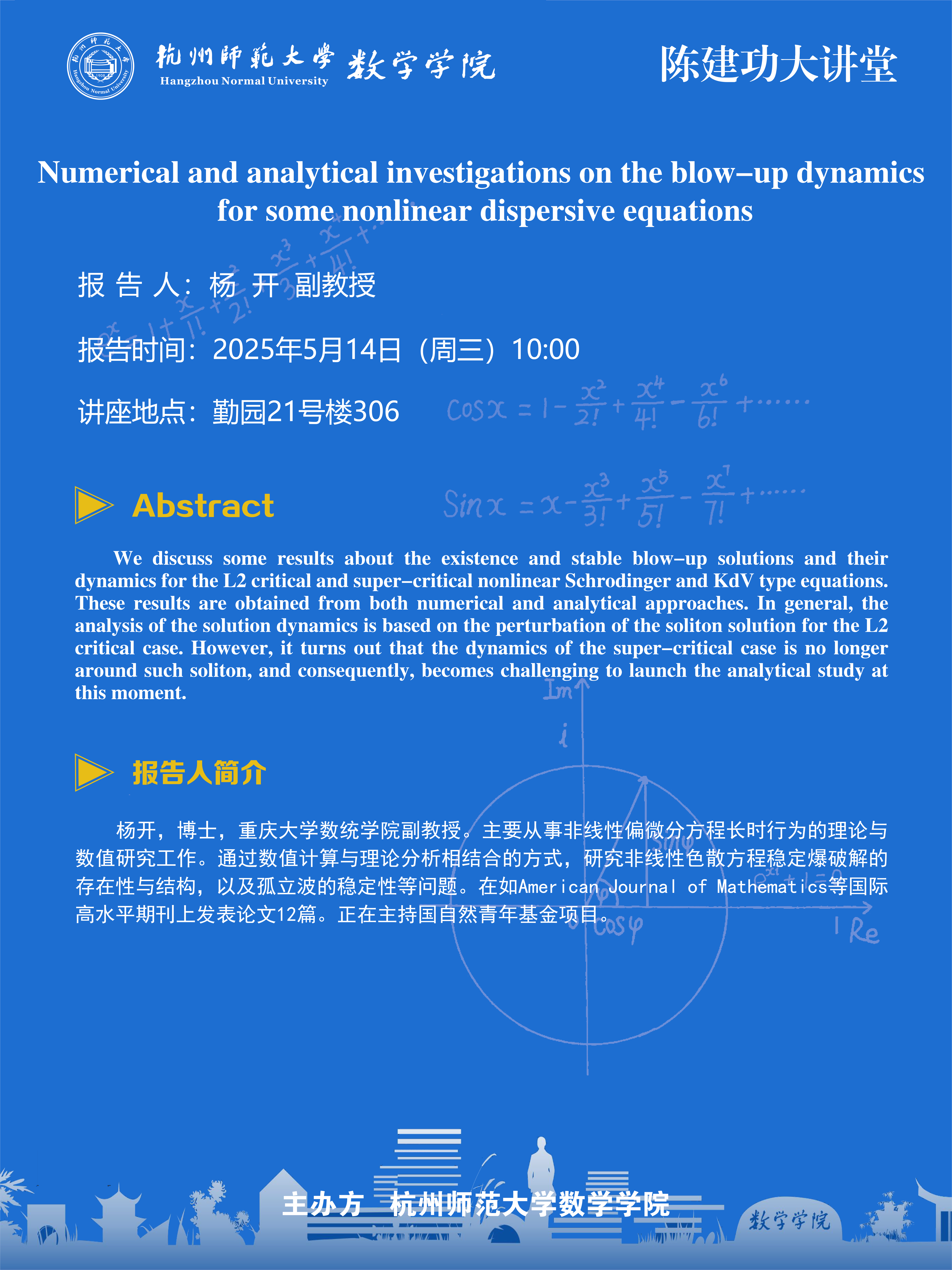 陈建功大讲堂(2025-31):Numerical and analytical investigations on the blow-up dynamics for some nonlinear dispersive equations