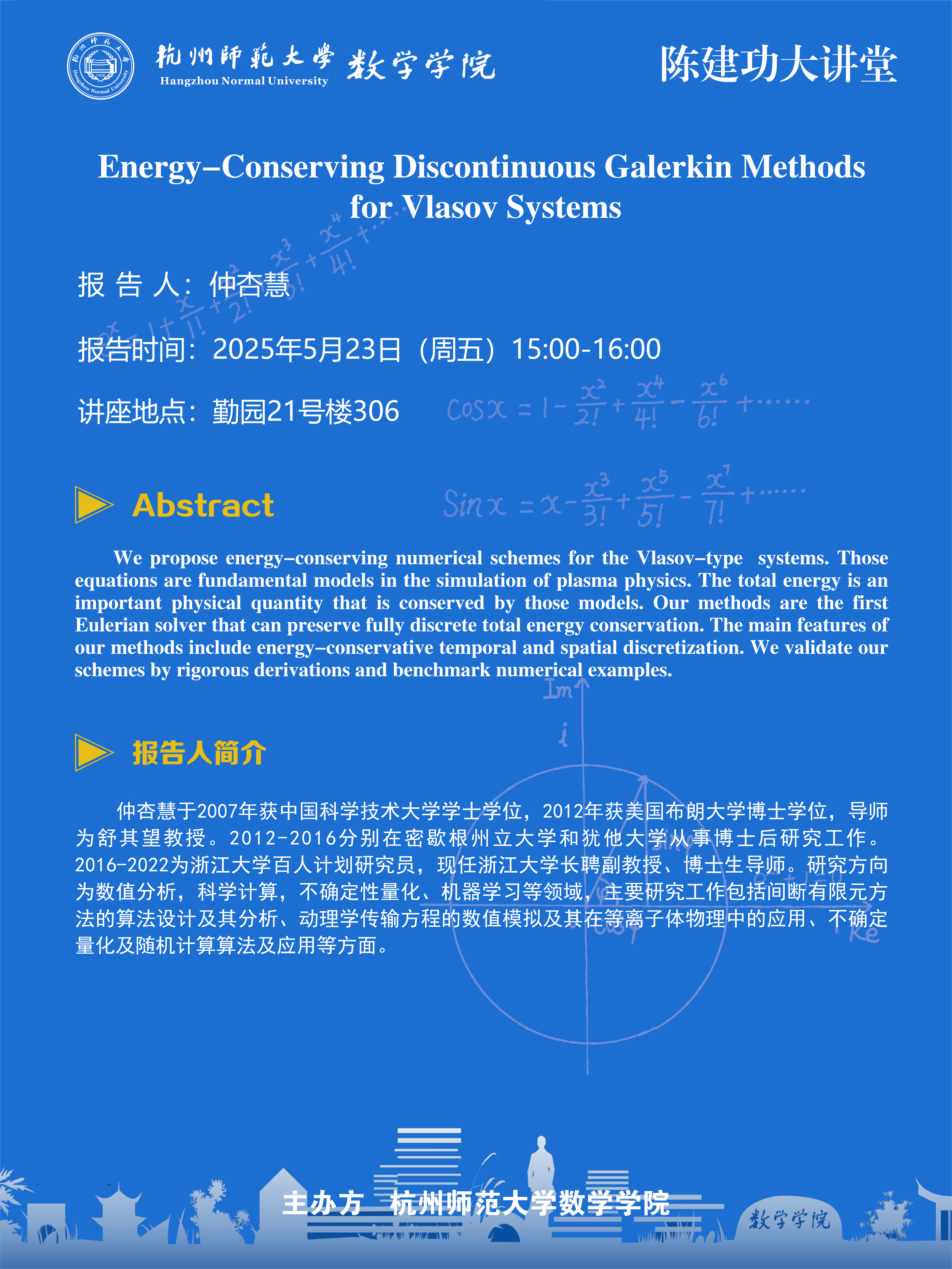 陈建功大讲堂(2025-34):Energy-Conserving Discontinuous Galerkin Methods for Vlasov Systems