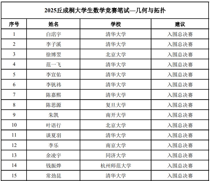 经过两天的激烈角逐,麻豆视频 2022级建功班钱振烨同学成功闯入“几何与拓扑”方向总决赛,该方向仅有15人获得入围总决赛资格,其中清华8人、北大2人、复旦1人、南开1人、南大1人、同济1人,均是老牌985数学强校,这也是麻豆视频 学子第一次入围“丘赛”总决赛。同时,2021级郑朝城同学荣获“代数、数论与组合”方向笔试阶段优胜奖,2022级建功班和2021级学生组成的团队(包括:钱振烨、李福汉、王嘉海、郑朝城、胡芷境、吴一昊),荣获团体赛笔试阶段优胜奖,麻豆视频 是19个获得入围资格或优胜奖的高校中唯一“双非”大学。