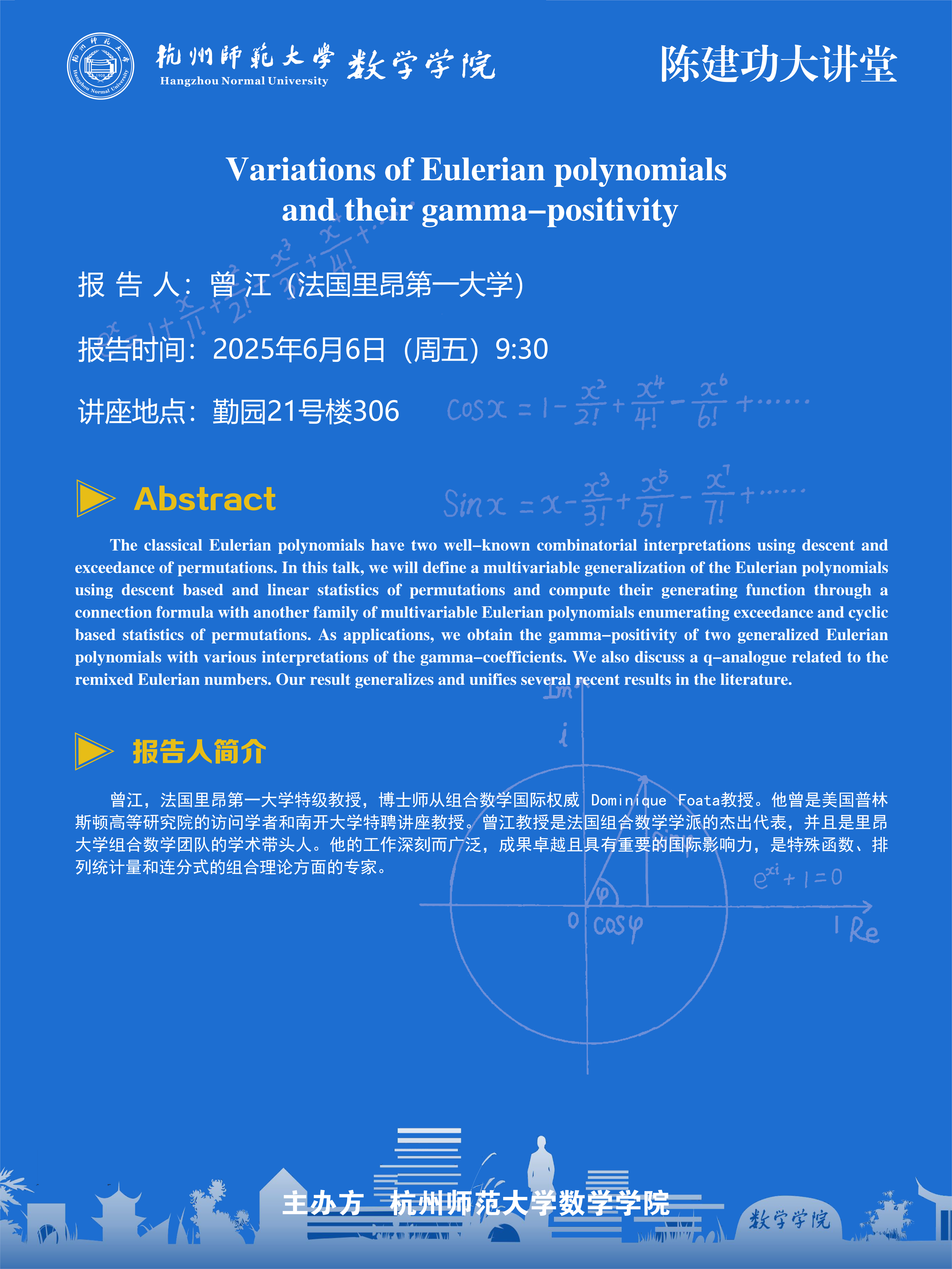 陈建功大讲堂(2025-48):Variations of Eulerian polynomials and their gamma-positivity