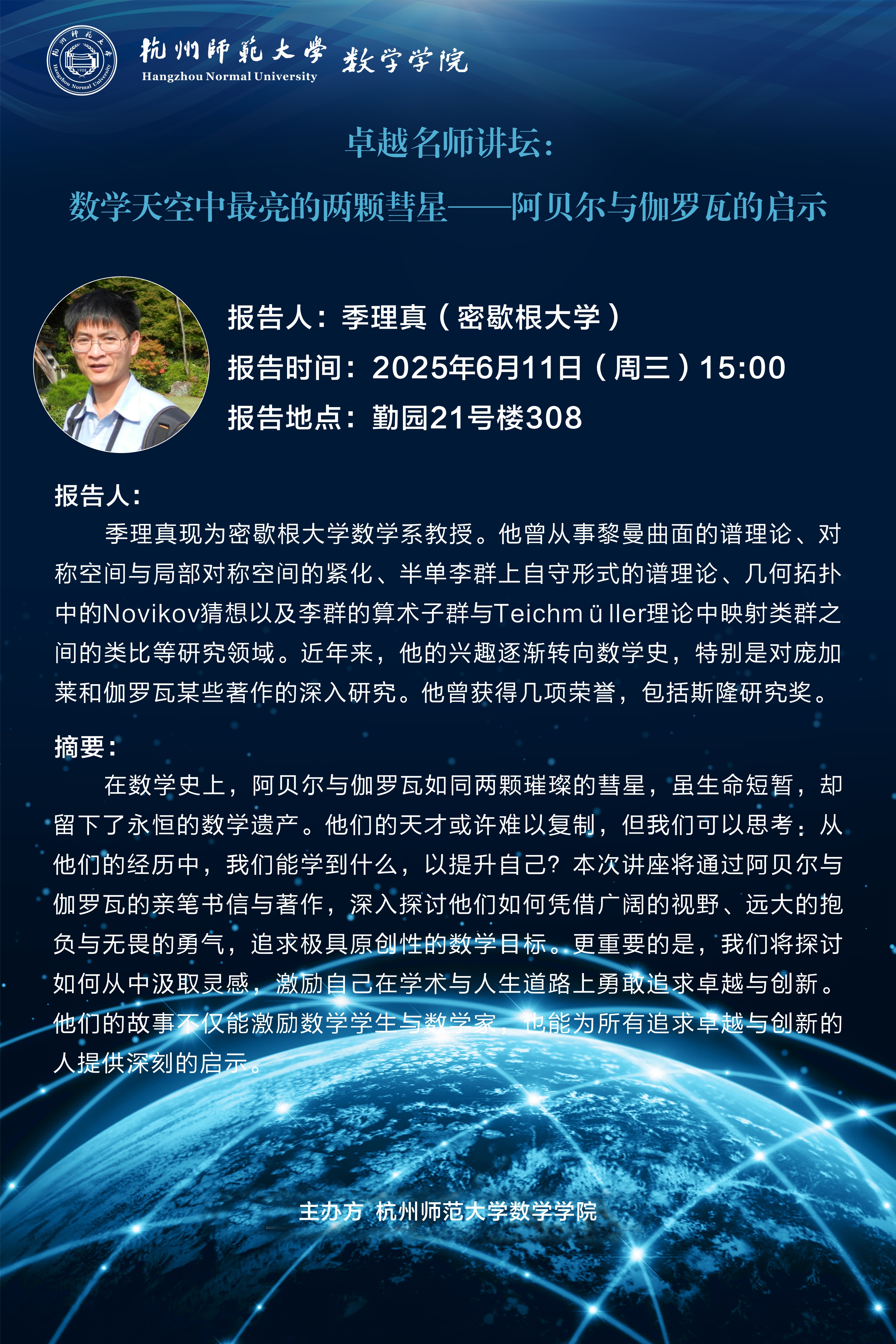 卓越名师讲坛:数学天空中最亮的两颗彗星-阿贝尔与伽罗瓦的启示