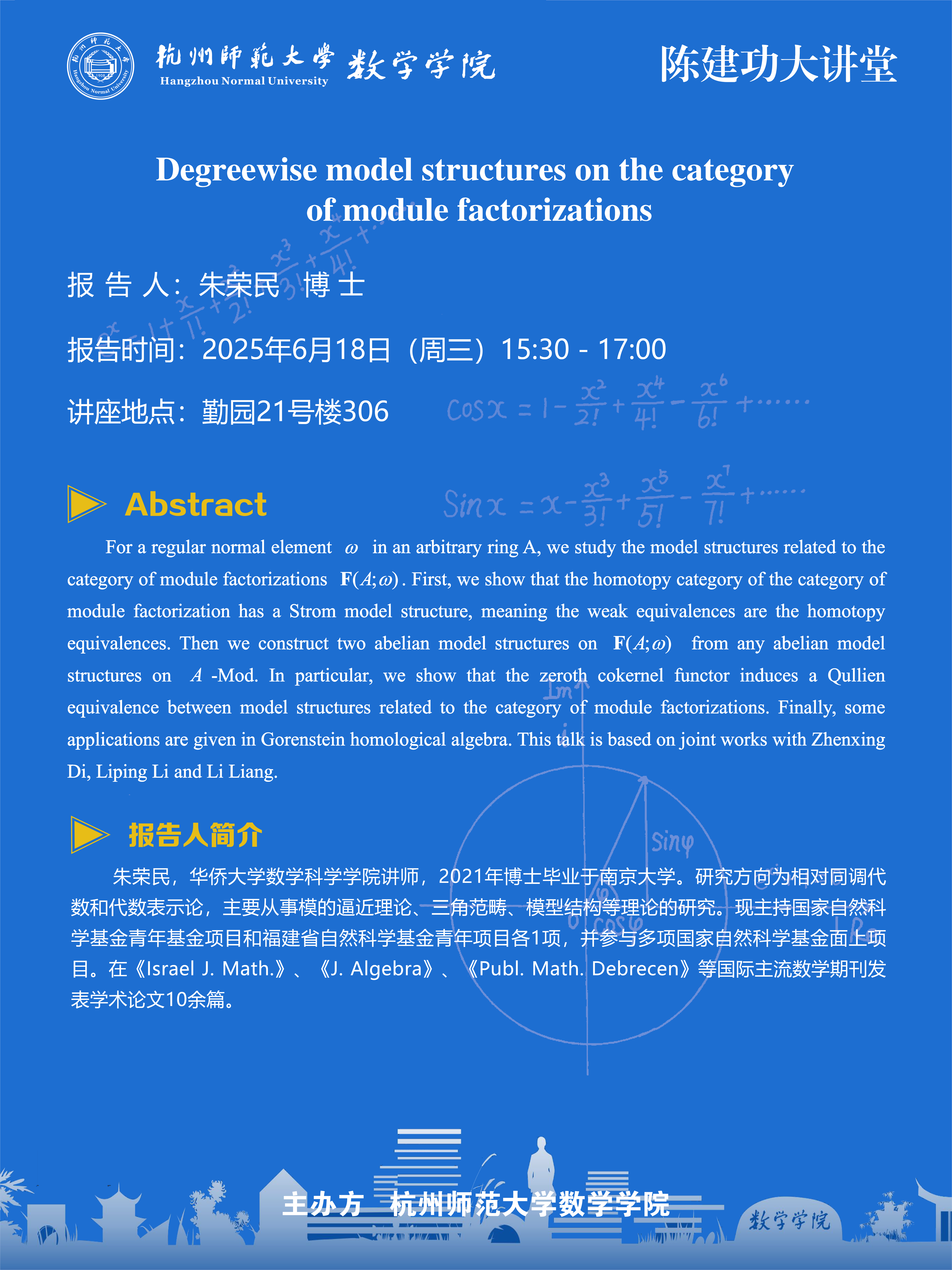 陈建功大讲堂(2025-51):Degreewise model structures on the category of module factorizations
