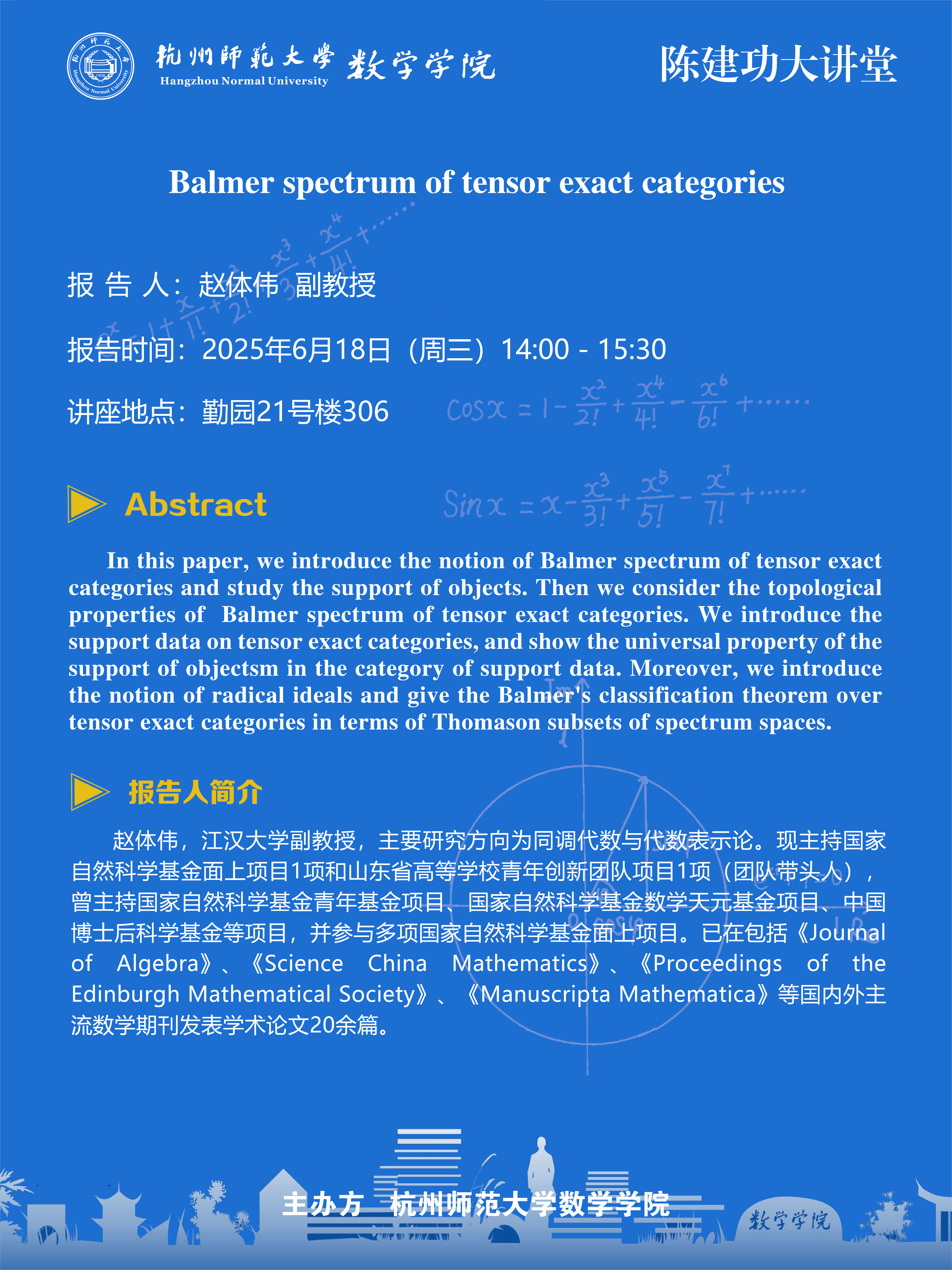 陈建功大讲堂(2025-52):Balmer spectrum of tensor exact categories