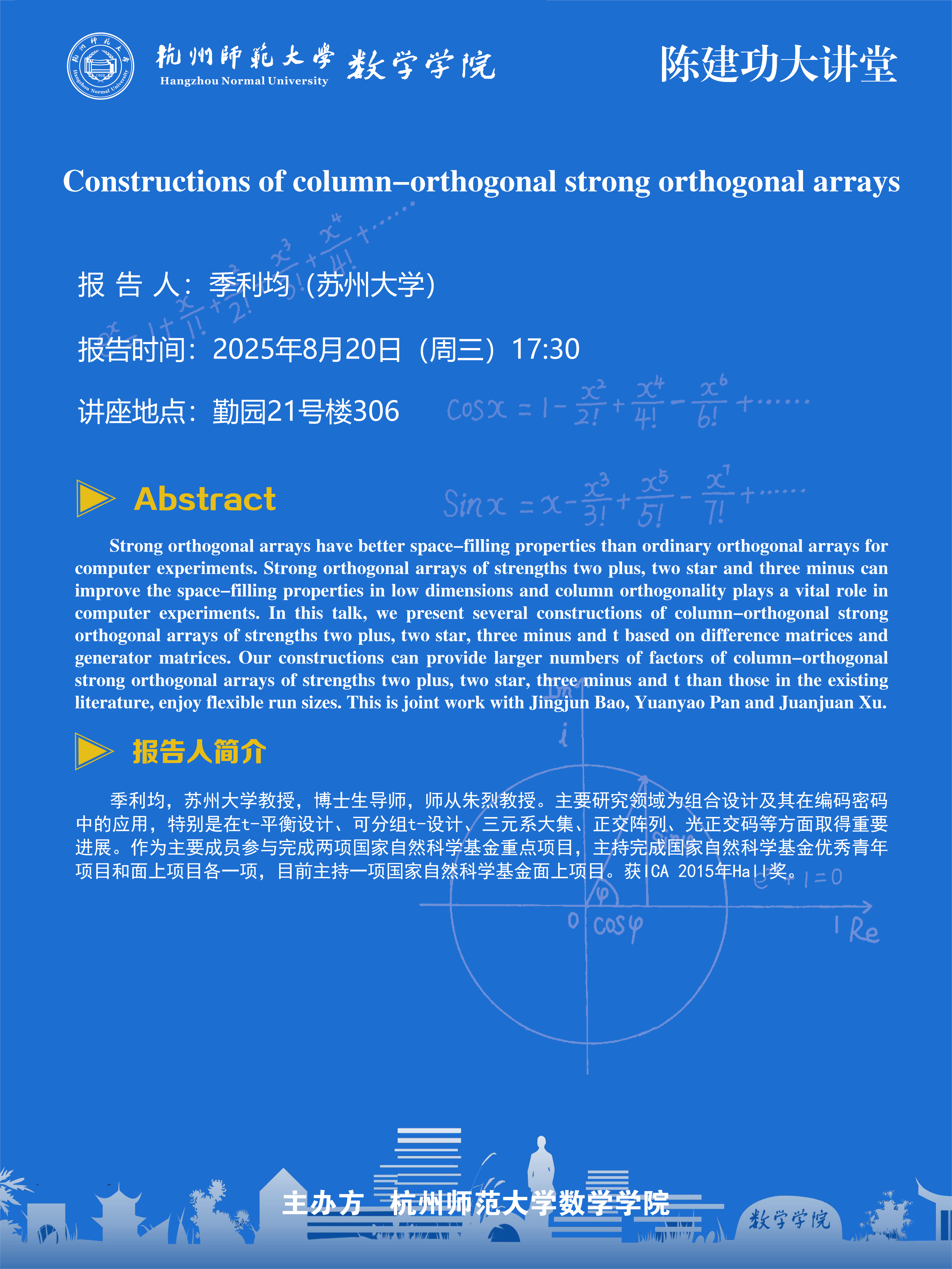 陈建功大讲堂(2025-59):Constructions of column-orthogonal strong orthogonal arrays