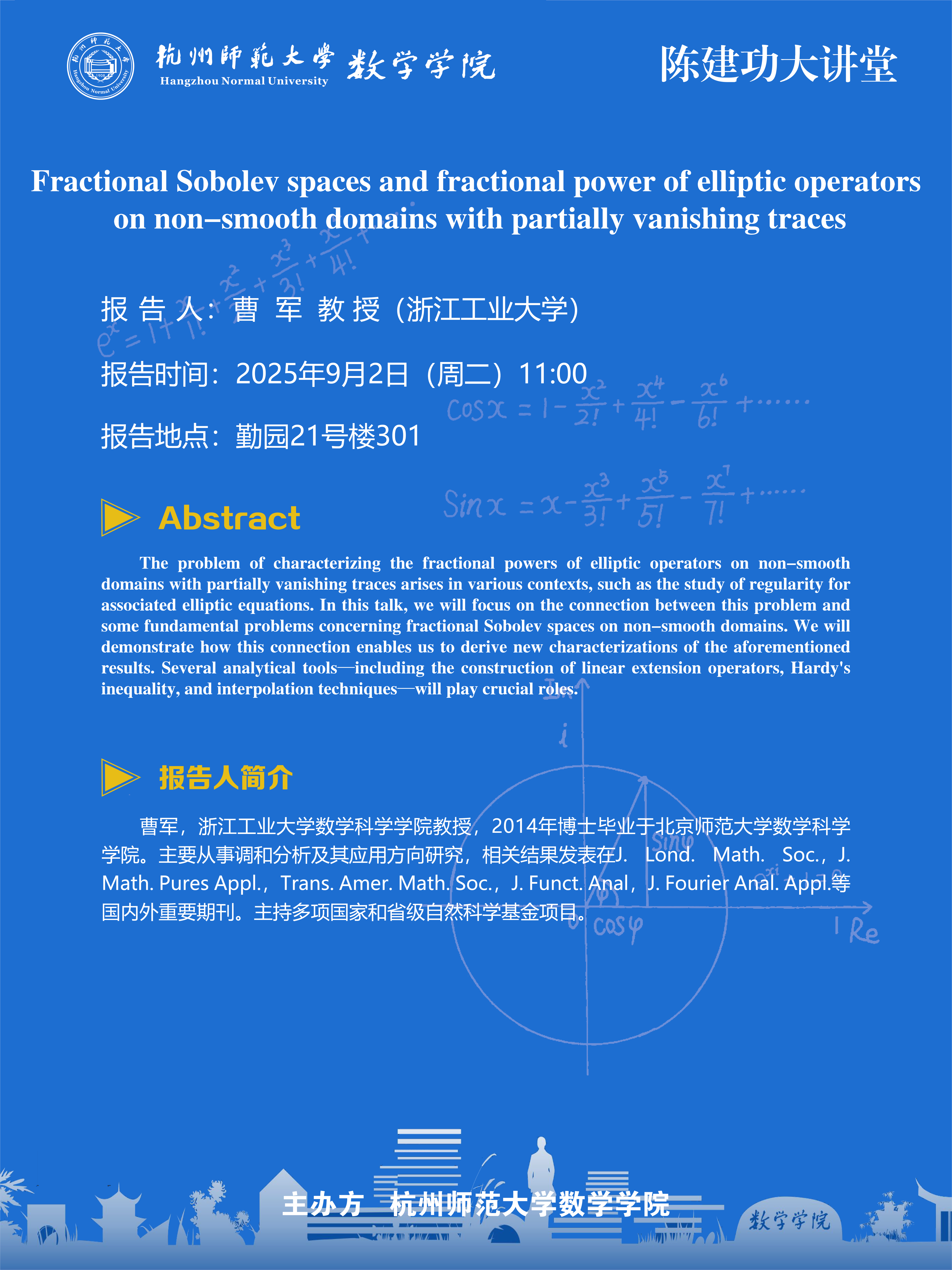 陈建功大讲堂(2025-61):Fractional Sobolev spaces and fractional power of elliptic operators on non-smooth domains with partially vanishing traces