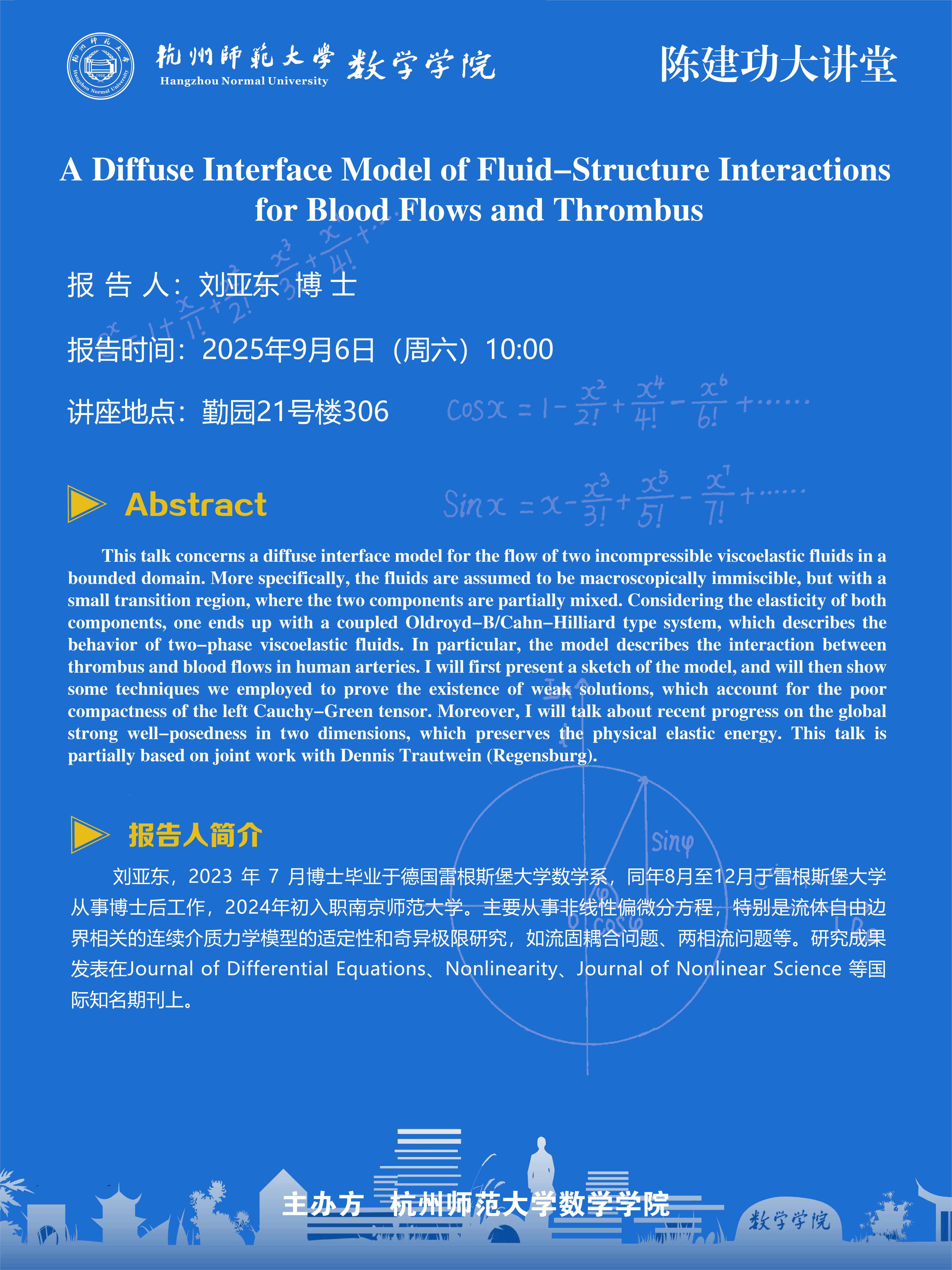 陈建功大讲堂(2025-62):A Diffuse Interface Model of Fluid-Structure Interactions for Blood Flows and Thrombus
