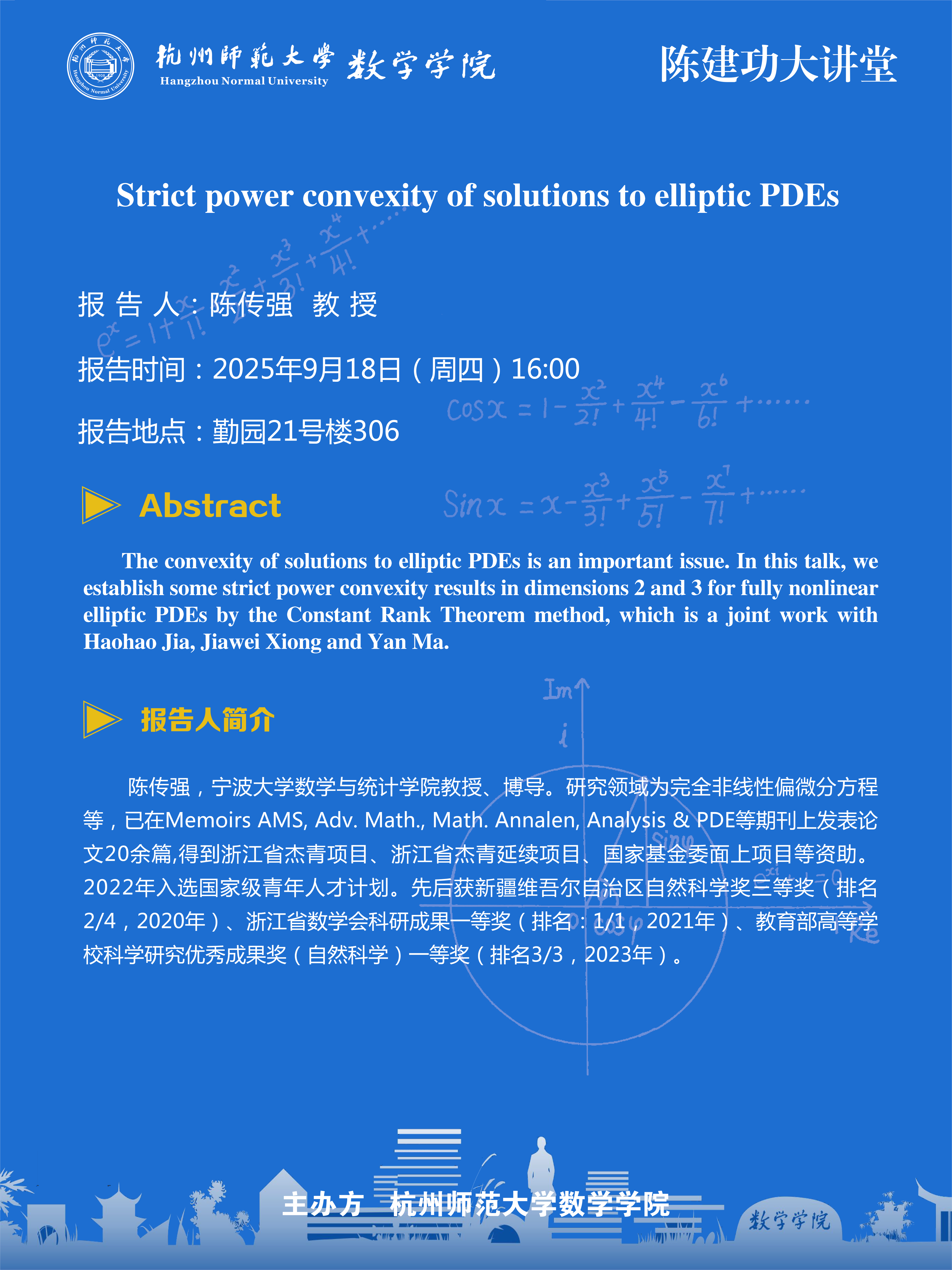 陈建功大讲堂(2025-65):Strict power convexity of solutions to elliptic PDEs