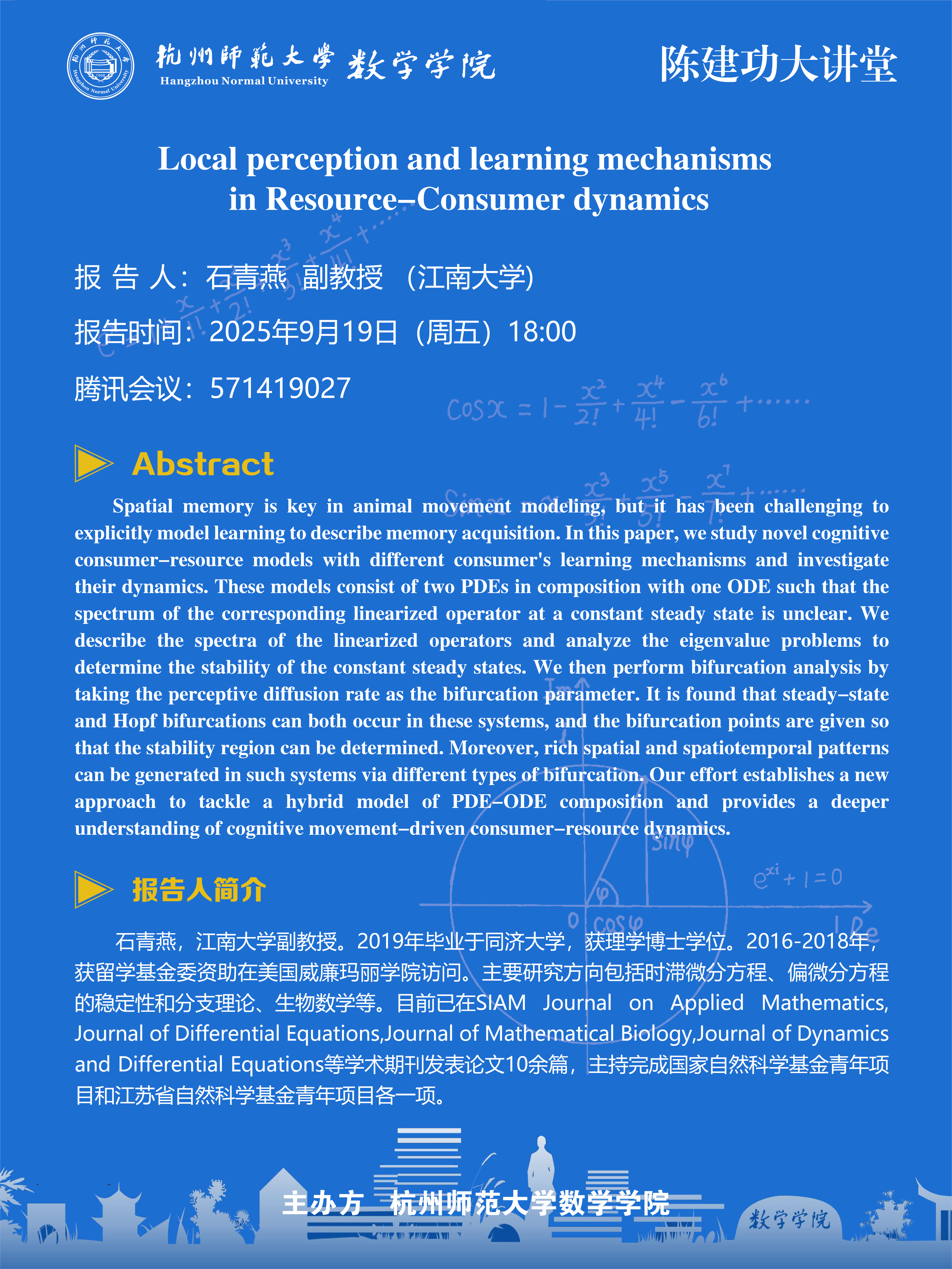 陈建功大讲堂(2025-70):Local perception and learning mechanisms in Resource-Consumer dynamics