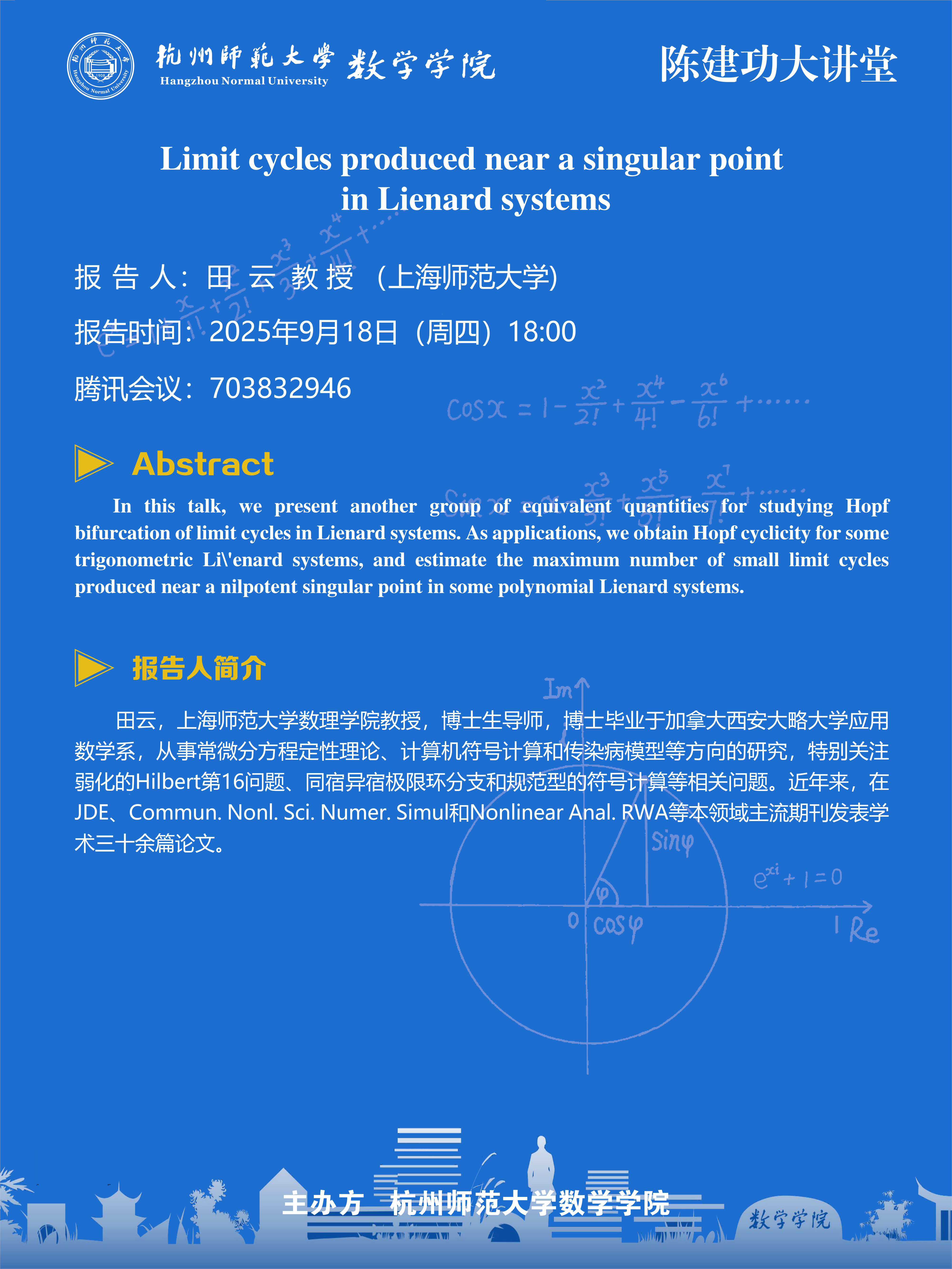陈建功大讲堂(2025-72):Limit cycles produced near a singular point in Lienard systems