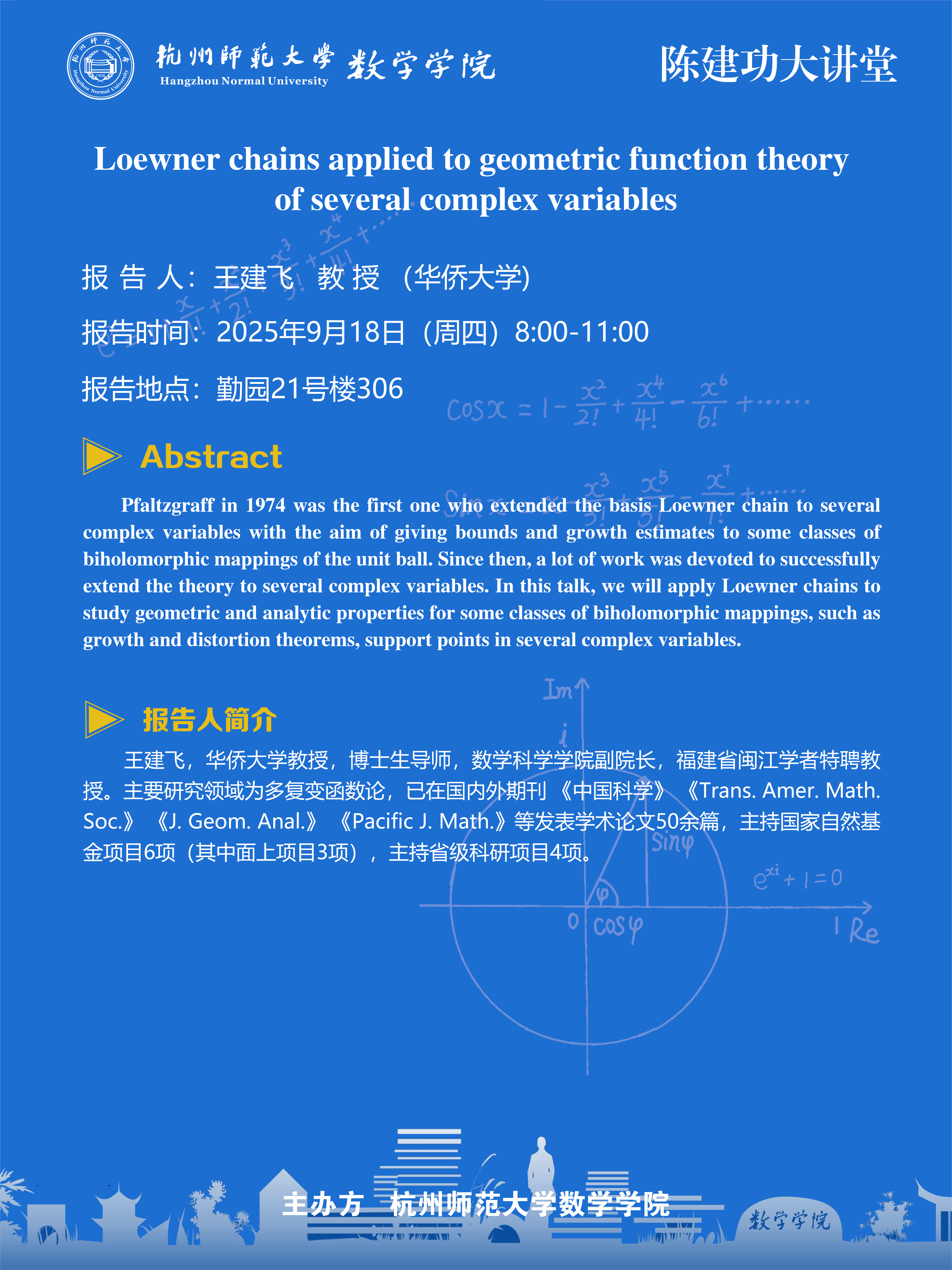 陈建功大讲堂(2025-73):Loewner chains applied to geometric function theory of several complex variables