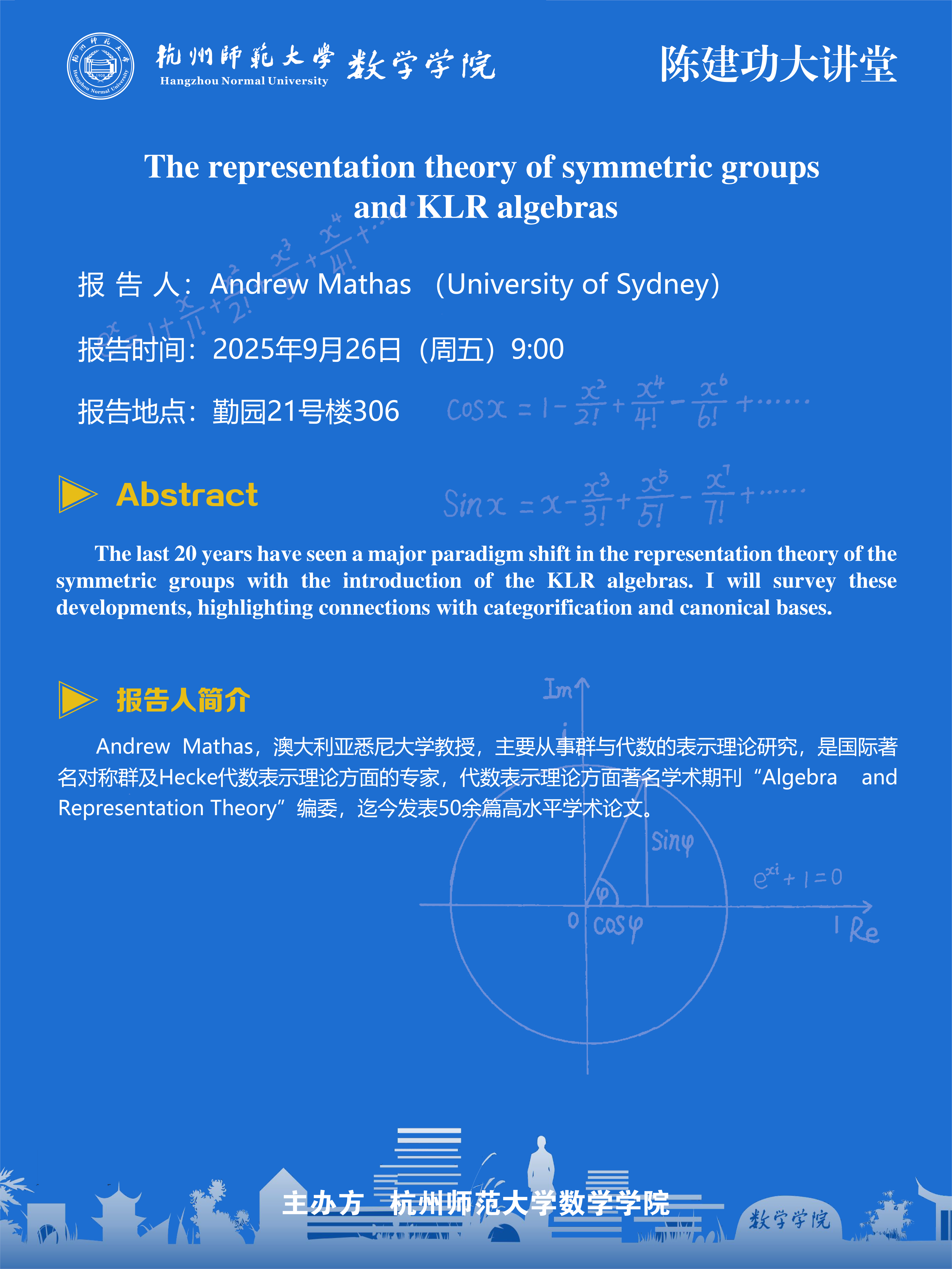陈建功大讲堂(2025-76):The representation theory of symmetric groups and KLR algebras