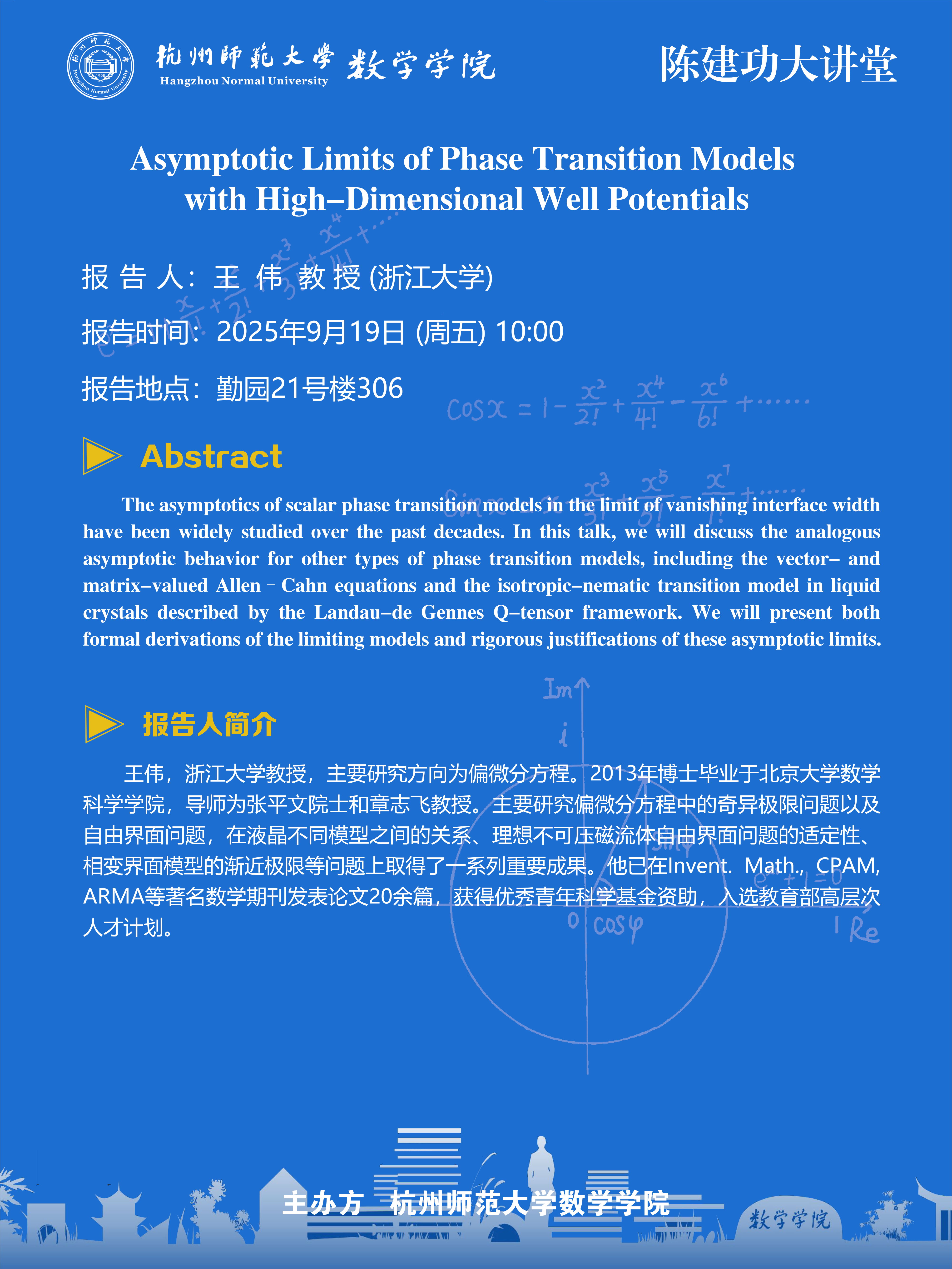 陈建功大讲堂(2025-77):Asymptotic Limits of Phase Transition Models with High-Dimensional Well Potentials