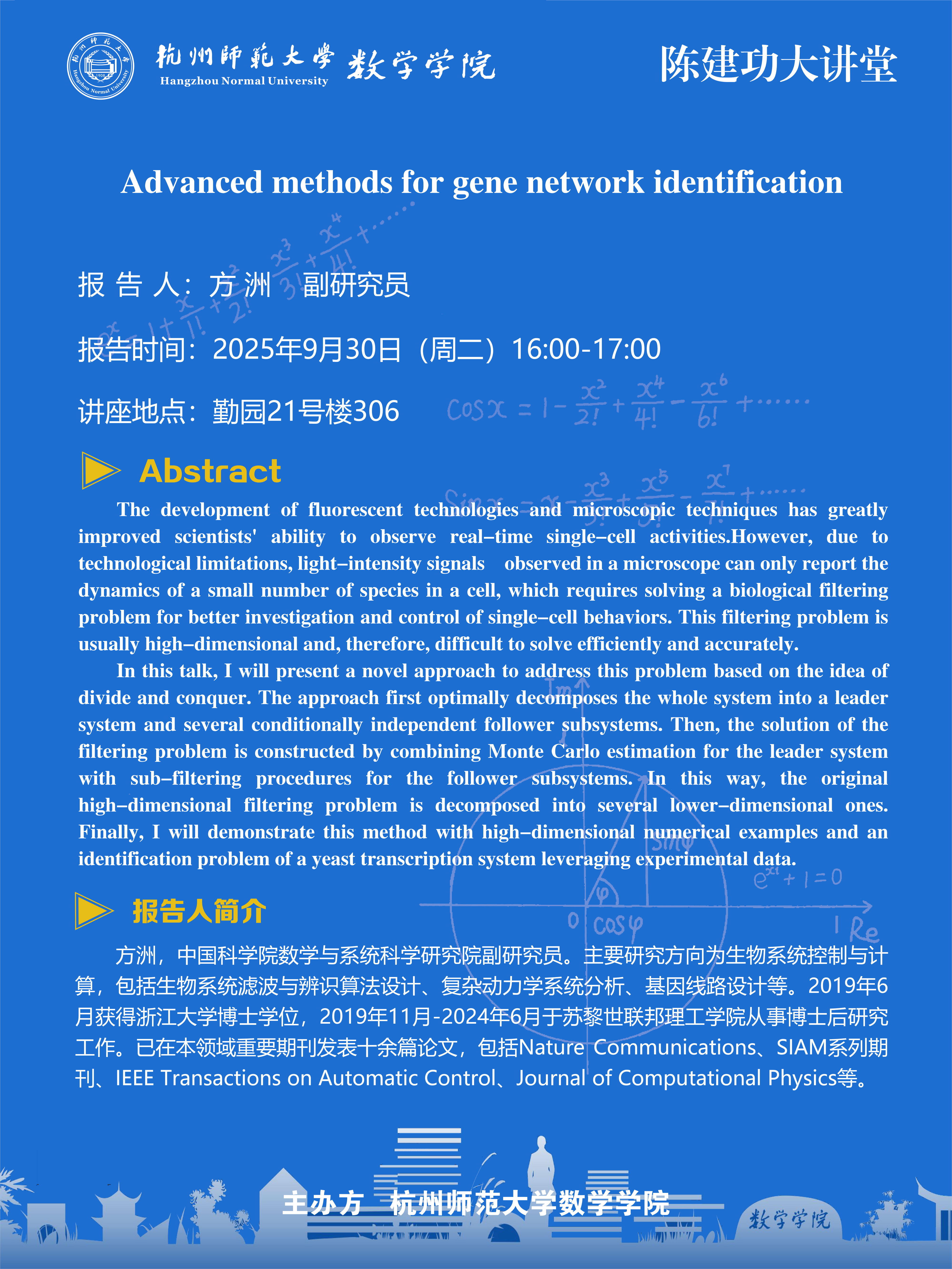 陈建功大讲堂(2025-79):Advanced methods for gene network identification