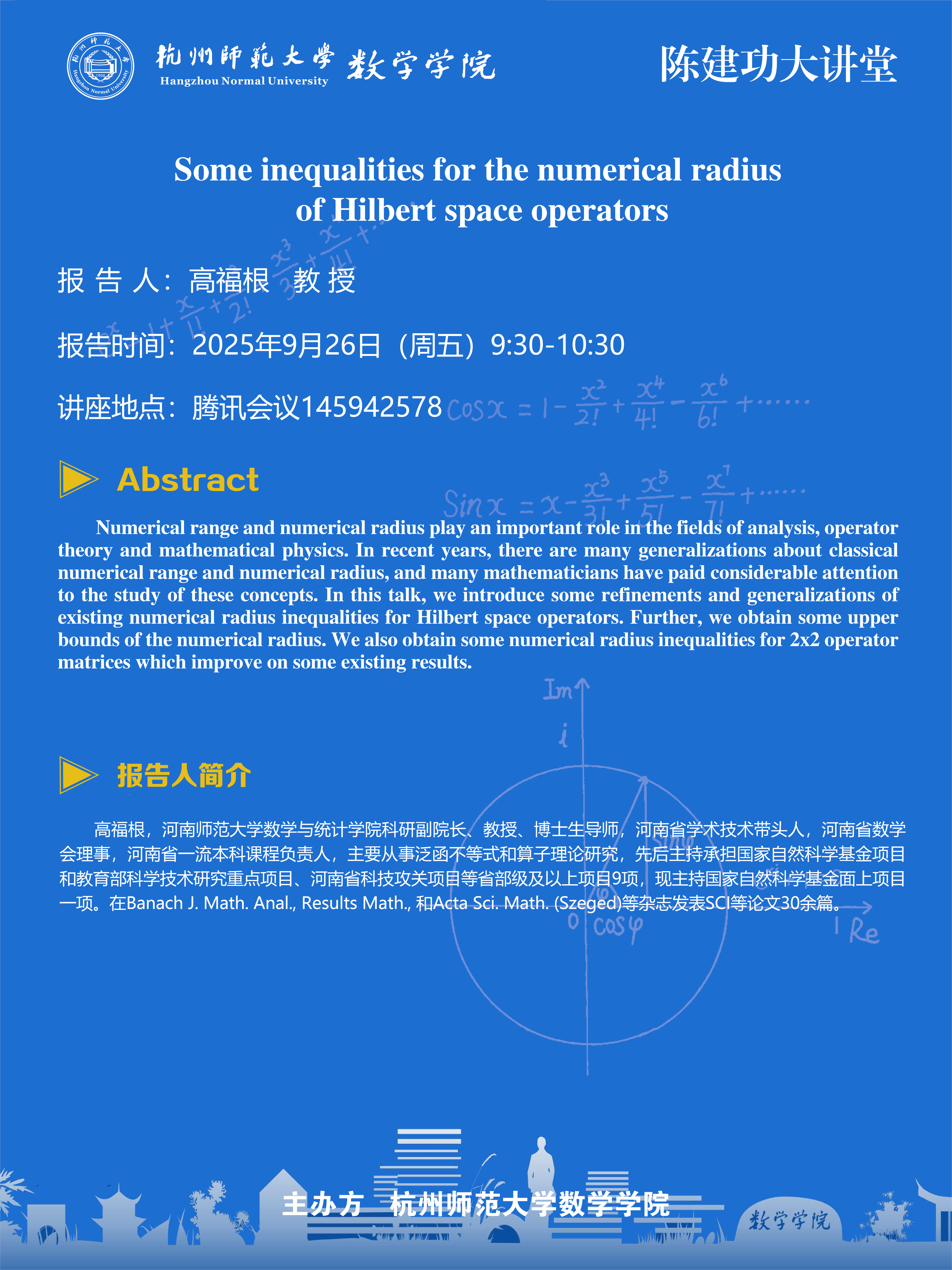 陈建功大讲堂(2025-80):Some inequalities for the numerical radius of Hilbert space operators