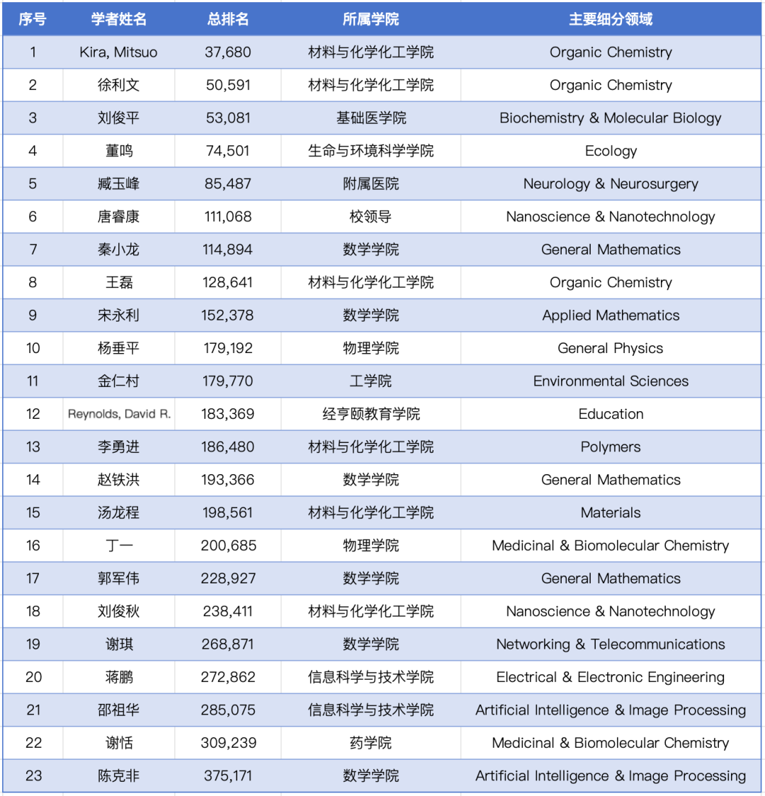 麻豆视频 23位学者入选全球前2%“终身科学影响力榜单”