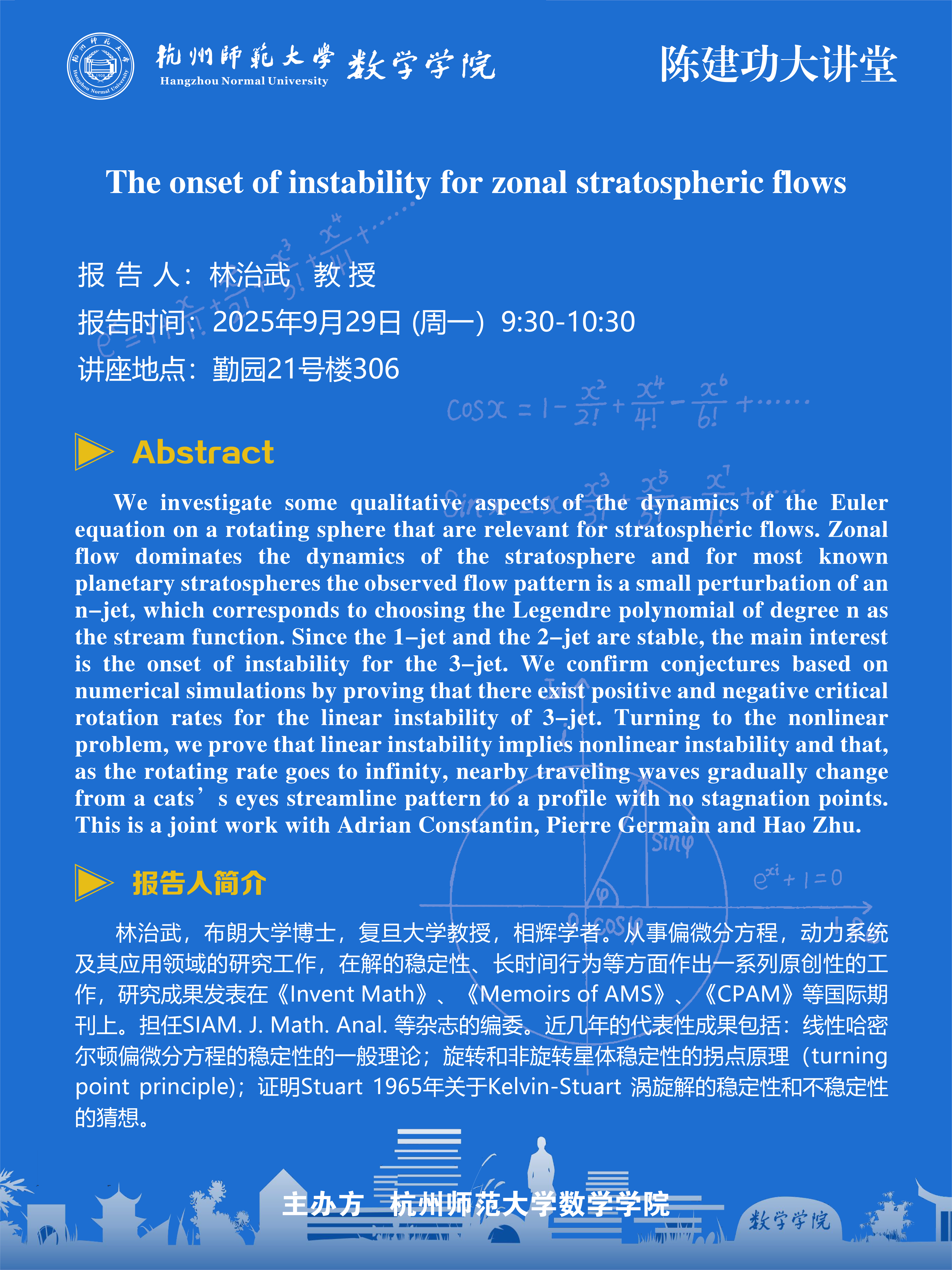 陈建功大讲堂(2025-83):The onset of instability for zonal stratospheric flows