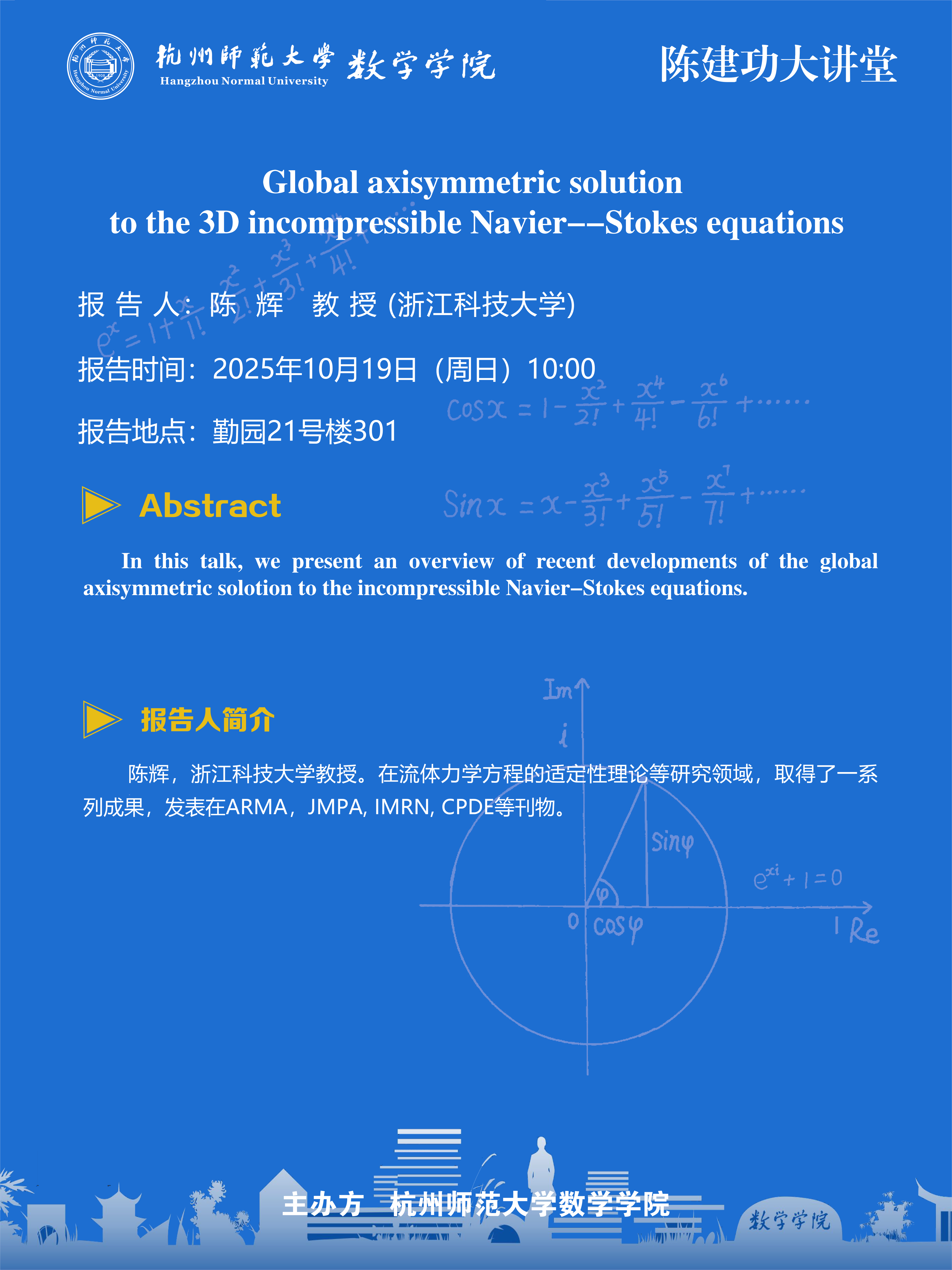 陈建功大讲堂(2025-93):Global axisymmetric solution to the 3D incompressible Navier--Stokes equations