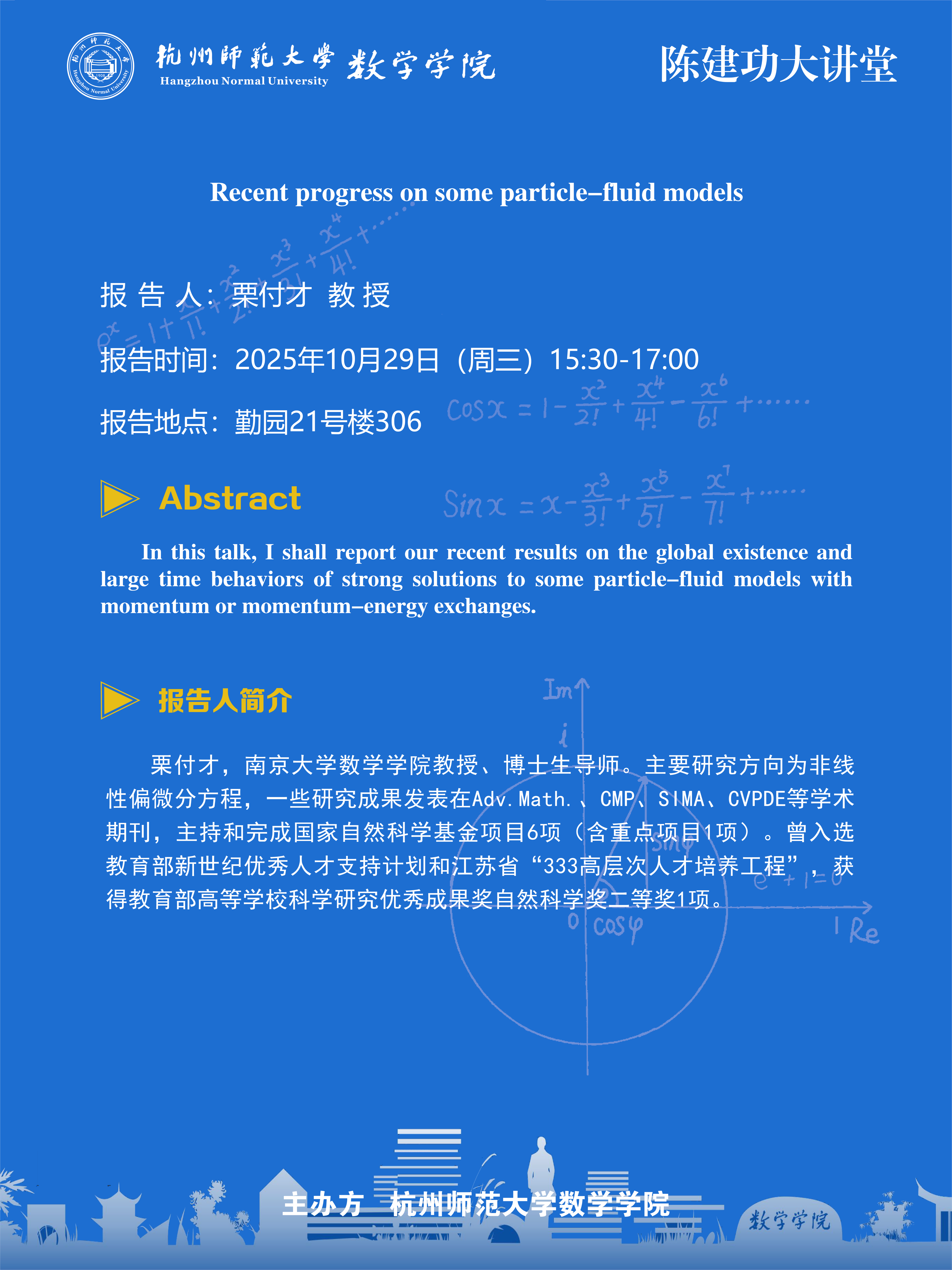 陈建功大讲堂(2025-110):Recent progress on some particle-fluid models