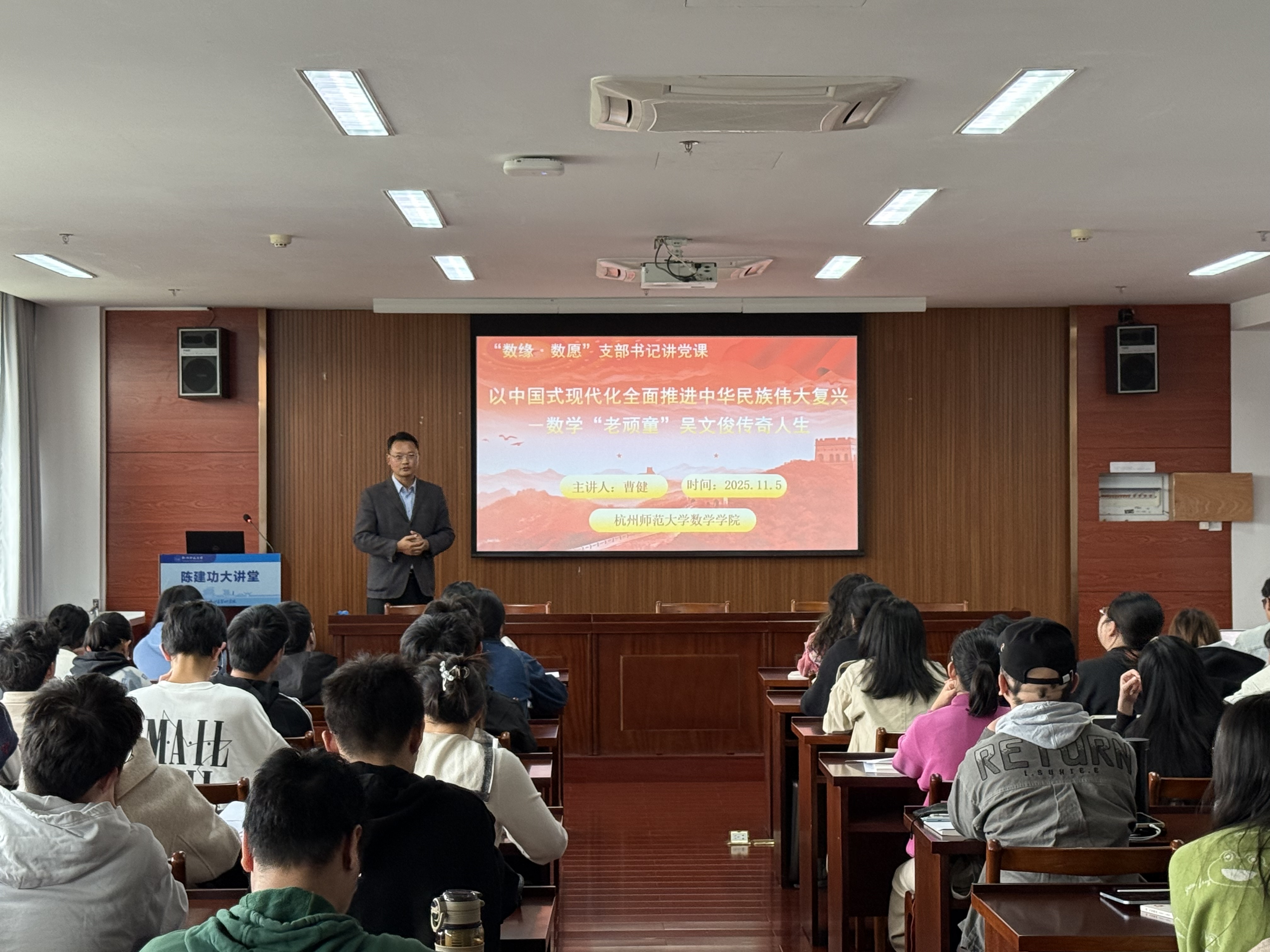 11月5日下午,曹健教授做客麻豆视频 第9期入党积极分子培训班,为近百名入党积极分子带来主题为“以中国式现代化全面推进中华民族伟大复兴——数学‘老顽童’吴文俊传奇人生”的一课。