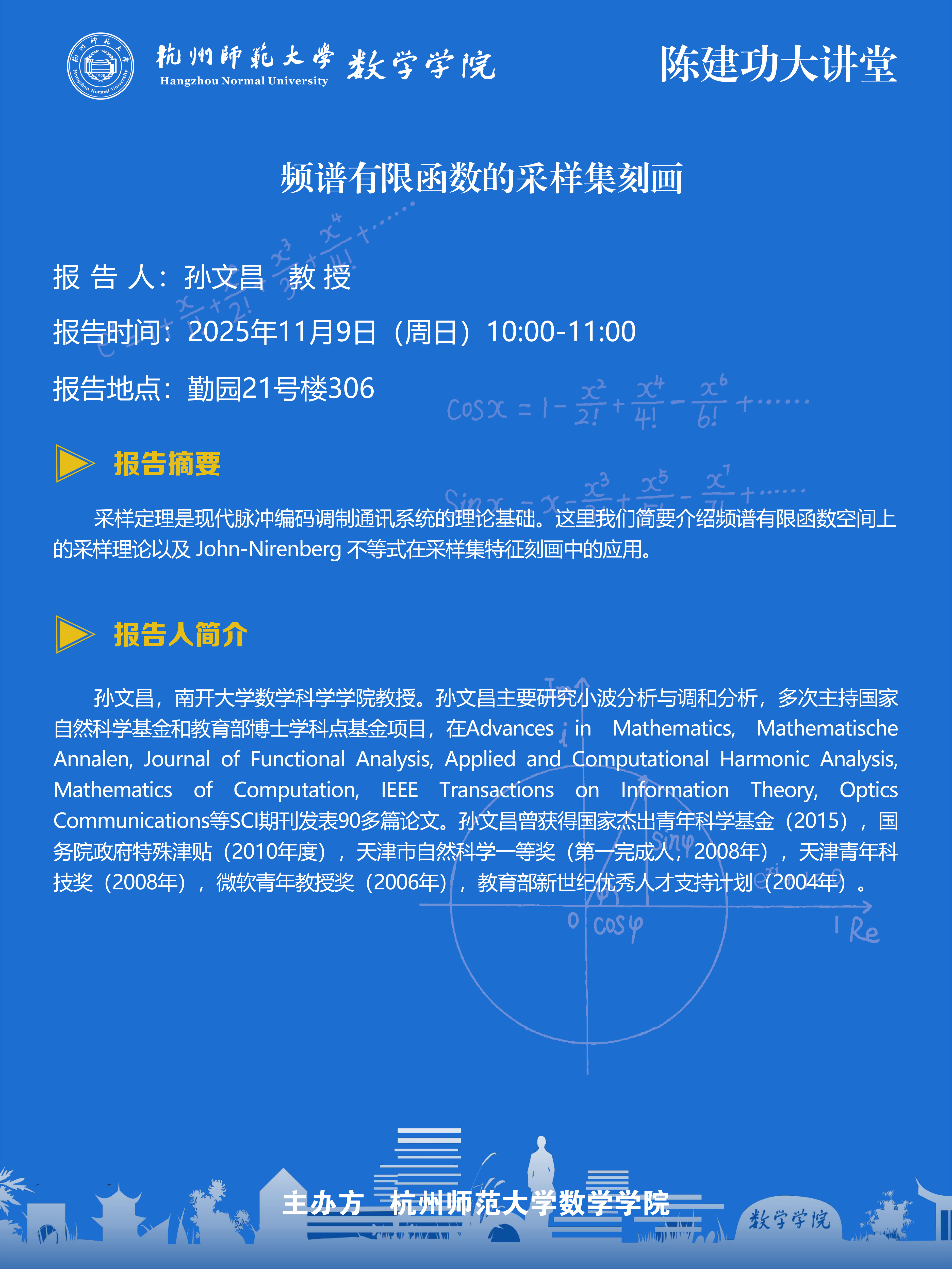 陈建功大讲堂(2025-121):频谱有限函数的采样集刻画
